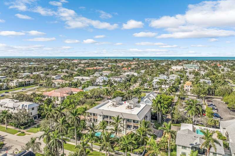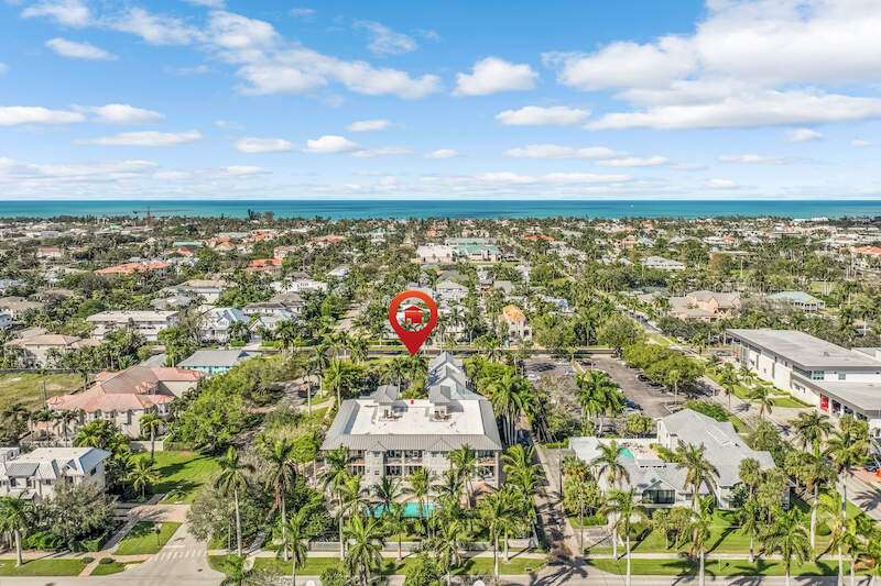 Unbeatable Location in Old Naples! Incredible opportunity to own a spacious 3-bedroom, 3.5-bath condo in the heart of Old Naples. Each bedroom features an en-suite bath, and a bonus room offers flexible use as a formal dining area, office, or media room. This elevated second-floor unit boasts volume ceilings, an open-concept kitchen, and two covered lanais with desirable eastern and western exposure for beautiful natural light throughout the day. Additional Highlights Include: Private poolside cabana Two-car private garage Secure elevator with FOB access Low-density community of just six units Shared pool, spa, and Tiki Hut-perfect for entertaining Just steps from 5th Avenue, Cambier Park, top-tier dining, shopping, and art galleries, this condo combines luxury, privacy, and convenience. A rare find in Old Naples-this one checks all the boxes!