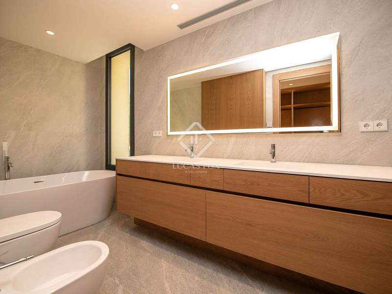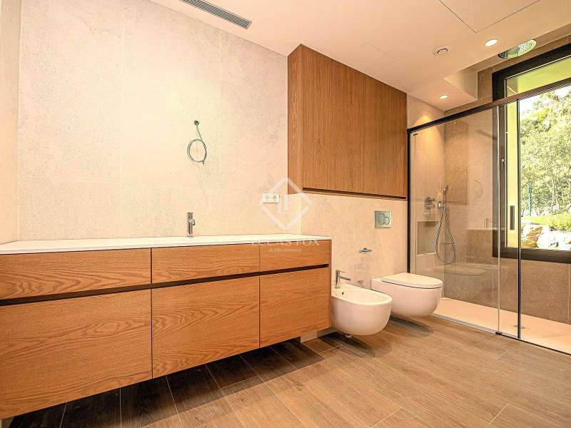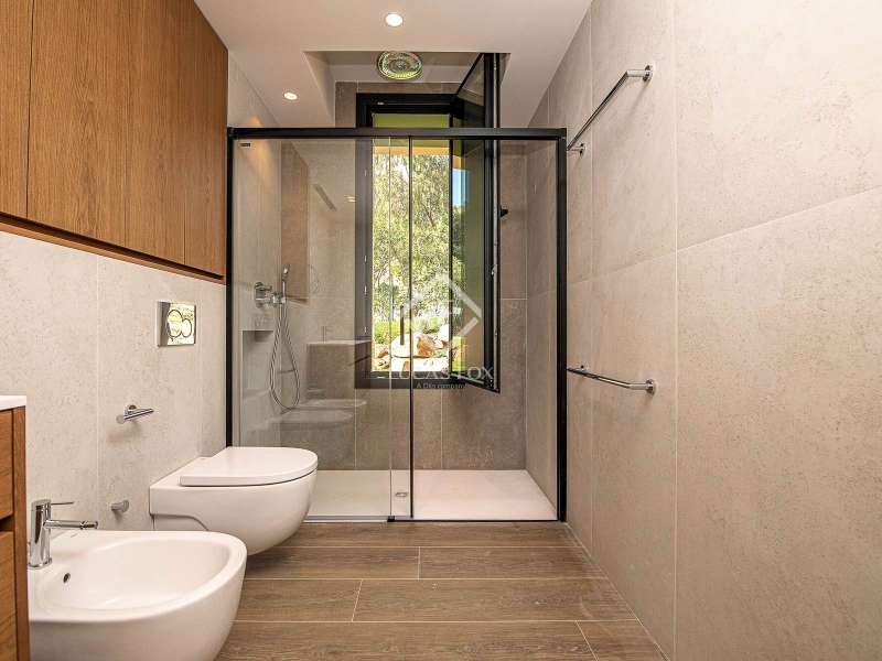 Lucas Fox presents this impressive luxury villa located in the Mas Nou development of Platja d'Aro. The property boasts a completely south-facing orientation, sea views, and a large glass surface. It is also a very comfortable villa . The villa benefits from a modern design with neutral tones and a careful selection of materials in each room. On the lower floor , we find a large open space with a huge living-dining room that blends seamlessly with the terrace. The kitchen, with a long central island, faces the large windows, offering fantastic views of the sea and mountains. If we go floor , we find four bedrooms with their own private bathroom and a fantastically large main bedroom connected to the private dressing room and bathroom . The house's most spectacular leisure area is found on the deck, where you can enjoy privileged views while relaxing in the chill-out area or cooking on the barbecue area. The house offers maximum comfort, with an elevator serving all floors, spacious spaces, and a garage for several cars. Contact us for more information.