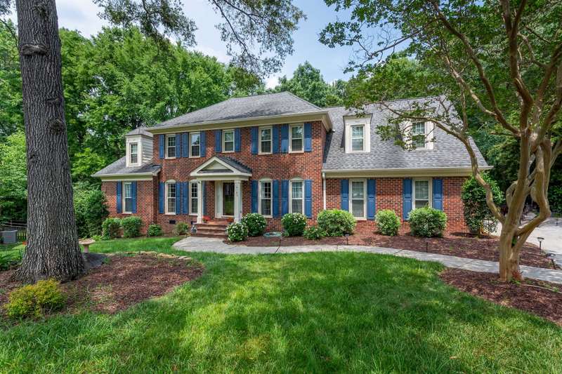 Welcome to the coveted Berkeley community. This full brick, original owner, well cared for home w/ oversized 2 car side load gar offers the perfect blend of comfort, elegance, and location. Hardwood flrs on main, neutral decor, freshly paint interior. Dual primary bedrms and laundry areas- one on the main level and one on upper level, formal dining and living rms, eat-in kitchen and family rm with wood burning fp. Spacious layout, generously sized secondary brms and walk-in closets and attic space. Versatile bonus/bedrm offering tons of flex and/or multi-generational uses. Large recently stained deck overlooks the private backyd retreat?lush green grass, mature trees plus room to relax. Nestled on a quiet cul-de-sac lot, this home offers both peace & accessibility. Top tier schools and close to everything South Charlotte has to offer. Enjoy being just minutes from shopping, restaurants, uptown and a quick drive to the airport. Opportunities in Berkeley don't come often-check it out! Pre-listing inspection completed and any necessary repairs professionally completed, transferrable termite bond, newer windows (2020), 2025 new hvac on main/2014 on upper level, healthy crawlspace and roof.
