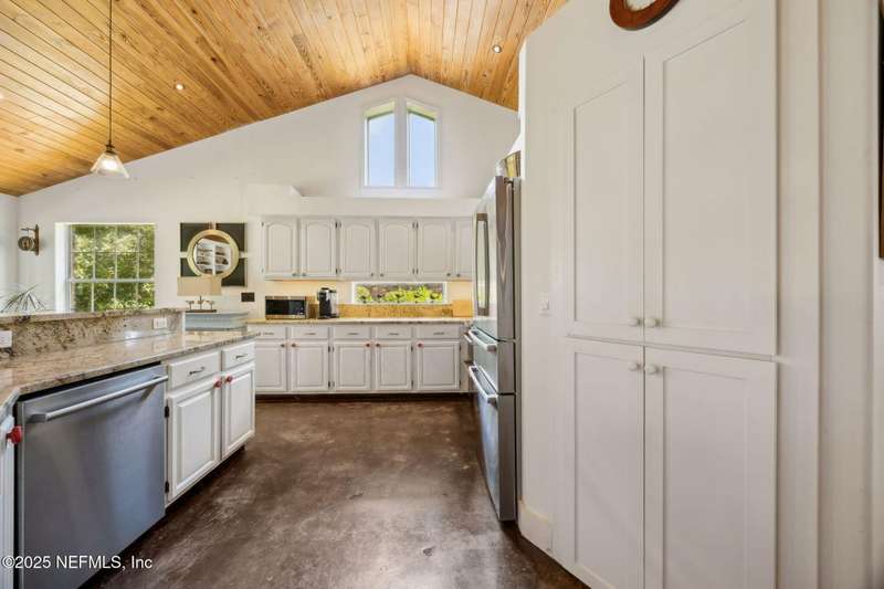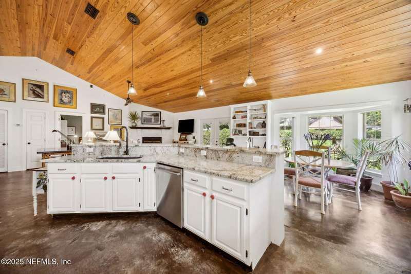 Nestled in the heart of Fernandina Beach, 2552 Pirates Bay Dr is a beautifully updated 3-bed, 2-bath home offering coastal charm and modern convenience. The open-concept layout features vaulted ceilings and a renovated kitchen with stainless steel appliances. Enjoy Florida living on the spacious screened porch overlooking a partially fenced yard-ideal for pets or play. Located in an A-rated school district, this home is just a short walk or bike ride to the beach and minutes from top-rated restaurants and shopping. Recent upgrades include a new roof (2025), enhancing peace of mind. Whether you're seeking a primary residence or a beachside retreat, this gem delivers comfort, location, and lifestyle.