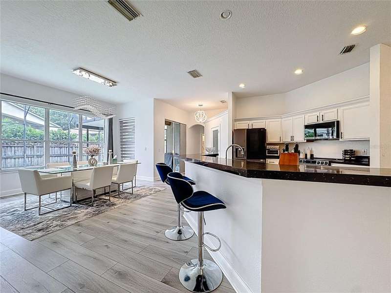 Reduced ! Welcome to Your Dream Home!Step into elegance at this stunning 4-bedroom, 3-bath oasis nestled in one of the area's most sought-after communities. With over 2,100 square feet of thoughtfully designed living space, this home seamlessly blends luxury and comfort.Interior ExcellenceFrom the moment you enter, you're greeted by rich luxury vinyl flooring that flows effortlessly throughout the living areas, offering both durability and designer appeal. The open-concept floor plan delivers soaring ceilings, abundant natural light, and the perfect layout for both entertaining and daily living.The heart of the living room is a stunning fireplace framed by an eye-catching stone accent wall-a true centerpiece that radiates warmth and sophistication. Whether you're hosting lively gatherings or enjoying quiet evenings, this beautifully designed feature brings character and comfort to every moment.Stone textures provide timeless elegance, while the ambient glow of the fire invites cozy chats, cinematic nights, and peaceful coffee mornings. It's not just a place to stay warm-it's where memories are made.Gourmet Kitchen & Living SpacesThe kitchen is a showstopper-equipped with modern cabinetry, granite countertops, stainless steel appliances, and a spacious island that anchors the heart of the home. The adjoining family room invites cozy movie nights and vibrant gatherings.Restful RetreatsWith four generously sized bedrooms, including a luxurious owner's suite with a spa-inspired bath, everyone gets their own slice of sanctuary. Three full bathrooms ensure convenience and style for guests and residents alike.Resort-Style BackyardStep outside to your private pool paradise, complete with a covered lanai and plenty of room for outdoor lounging, grilling, or sunset dining. Whether you're hosting friends or unwinding with a book, this outdoor haven is the perfect escape.Location & LifestyleSituated in a superb community known for its scenic beauty, top-rated schools, and unbeatable playground amenities, you'll enjoy walking and enjoy the neighborly charm. Just minutes from shopping, dining, and major roadways, convenience is key. Claim this stunning home before it's gone-opportunities like this don't stay on the market long! Act fast ! Schedule your showing today so you can move in tomorrow.