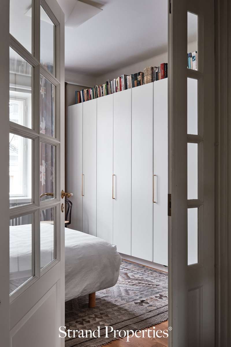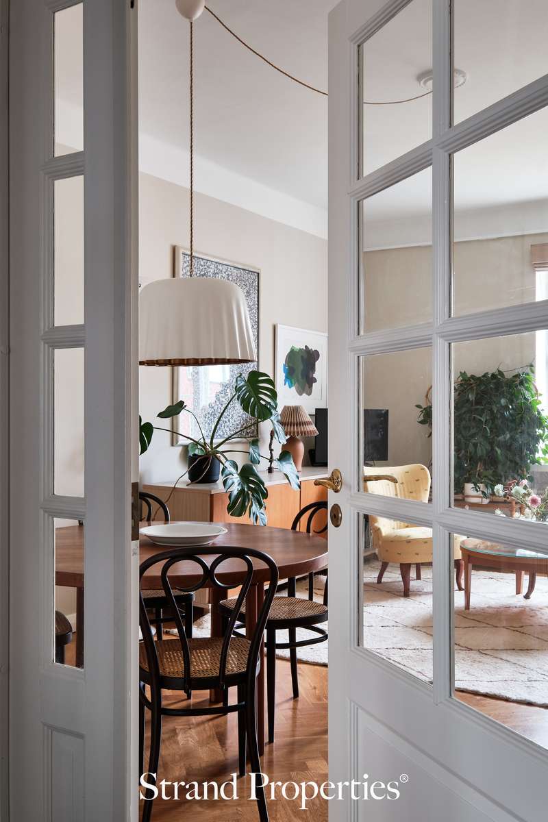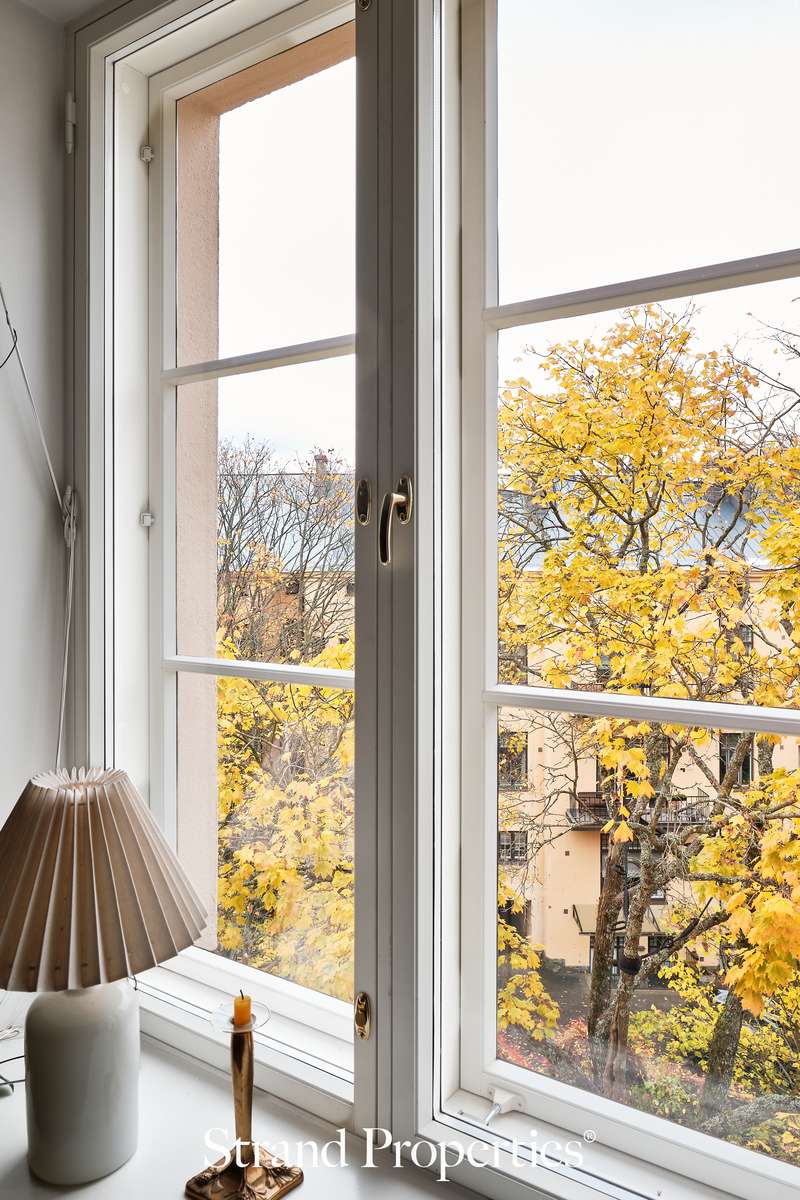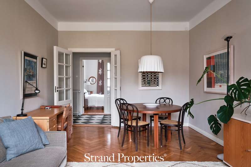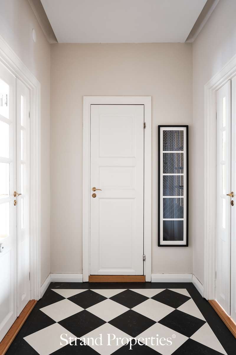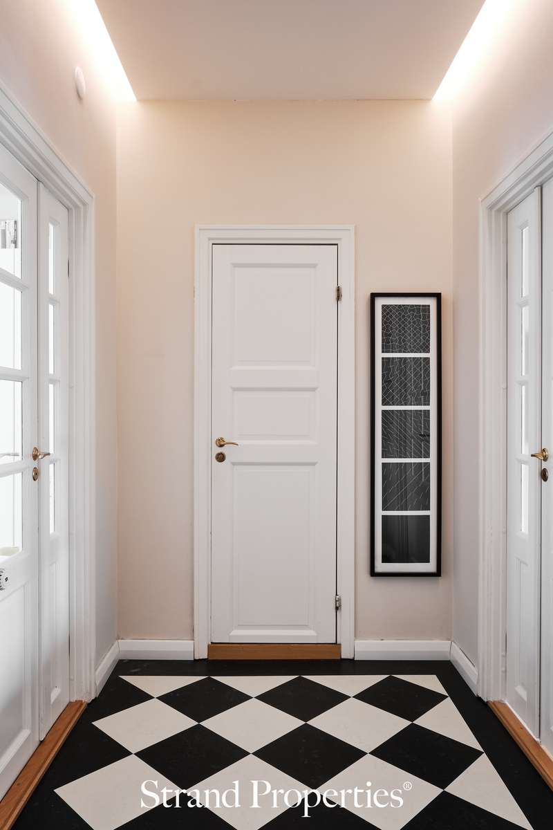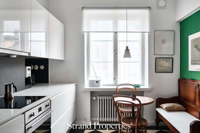 Viehättävä ja hyväkuntoinen kaksio Ullanlinnan sydämessä, Kaivopuiston ja meren läheisyydessä. Tervetuloa tutustumaan tähän hurmaavaan, hyväkuntoiseen 60 m² kaksioon, joka sijaitsee Raatimiehenkadulla, Arkkitehti Runar Finnilän piirtämässä talossa. Sijainti on yksi Helsingin halutuimmista – aivan Kaivopuiston vehreyden ja merenrantareittien vieressä ja omassa rauhassa sisäpihan suojassa. Tämä läpitalon huoneisto on remontoitu ajattoman tyylikkäästi. Olohuoneen ja makuuhuoneen pikkuruutuiset lasipariovet, eteisen ja keittiön klassiset shakkiruutulattiat ja kalanrutoparketti olohuoneessa sekä vitivalkoiset keittiön kaapistot yhdistettynä mustaan tekevät kokonaisuudesta täydellisen. Makuuhuoneessa on pitkä rivi vaatekaappeja, kerrankin tarpeeksi säilytystilaa. Kylpyhuoneeseen tuo viimeisen silauksen ja persoonallista raikkautta vihreät lasimosaiikit sekä Tapwellin messinkiset vesikalusteet.