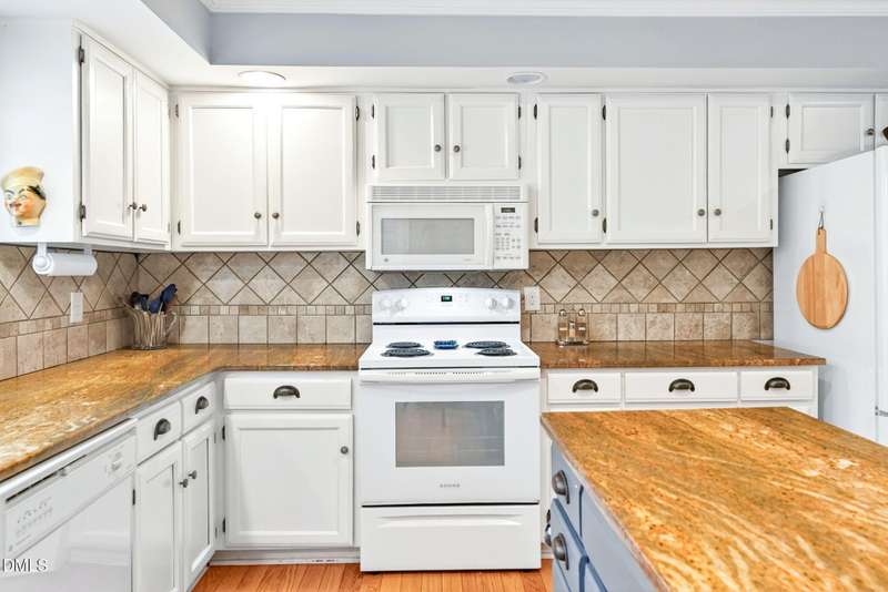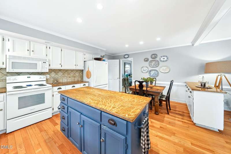 Welcome to this beautifully maintained and thoughtfully designed 3 Bedroom / 2 Bathroom Ranch-style Home, located in one of the most sought-after neighborhoods in the North Ridge / Haymarket area. This charming residence sits on a large, picturesque corner lot, surrounded by mature trees that provide both beauty and privacy, offering the perfect balance between classic elegance and everyday comfort. Step inside to discover a home filled with warmth, character, and tasteful designer accents throughout. With a spacious and flowing layout, this home is ideal for both relaxing day-to-day living and stylish entertaining. The formal living and dining rooms feature abundant natural light and are perfect for hosting guests or enjoying quiet evenings at home. The heart of the home is the oversized kitchen, which offers ample cabinet space, Granite countertops, and a bright breakfast area; a wonderful spot for morning coffee or casual meals. The kitchen seamlessly opens to a welcoming family room with a cozy masonry fireplace, creating a central gathering space for family and friends during holidays, weekends, or special occasions. The first-floor primary suite is a true retreat, complete with a private en-suite bathroom and generous closet space. Two additional well-sized bedrooms and a second full bath are also located on the main floor, making this home perfect for families, guests, or even a home office setup. Additional interior features include: A separate laundry/mudroom area conveniently located off the kitchen, providing easy access to both the garage and backyard. Abundant closet and storage space throughout, large windows that bring in plenty of natural light Once outside, enjoy the beautifully landscaped yard and expansive deck, perfect for outdoor dining, barbecues, or simply relaxing with a good book. The side-load two-car garage includes built-in shelving and extra storage space, ideal for tools, bikes, or seasonal items and has a new Garage Door. Located just minutes from Raleigh's top-rated schools, shopping centers, local restaurants, and entertainment options, this home also offers easy access to I-540, making your commute and travel around the Triangle area a breeze. Whether you're a first-time buyer, downsizing, or looking for a forever home, this property checks all the boxes! Don't miss the opportunity to own this delightful home in one of the Triangle's most beloved neighborhoods. Schedule your private showing today!