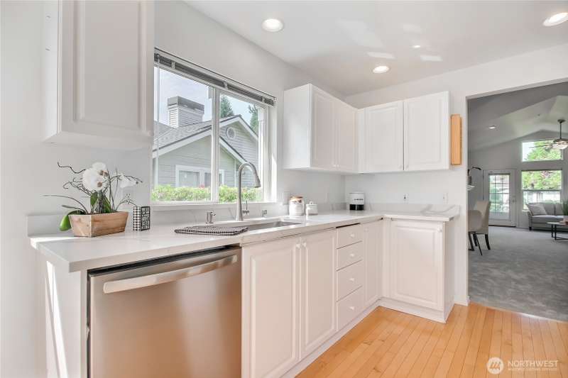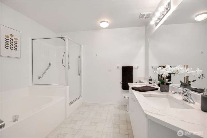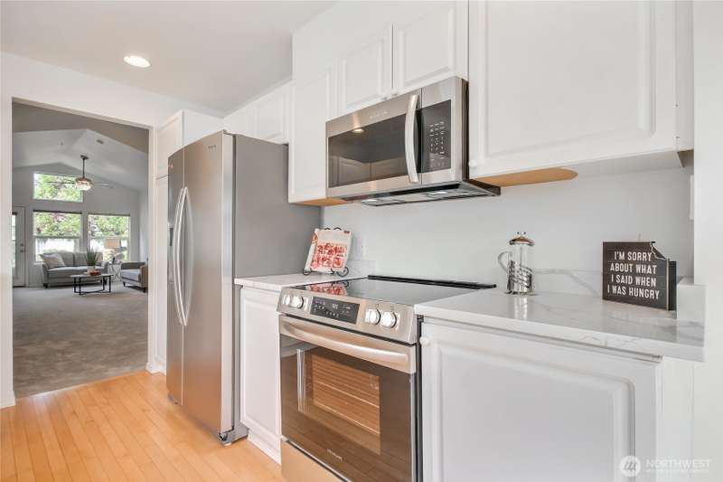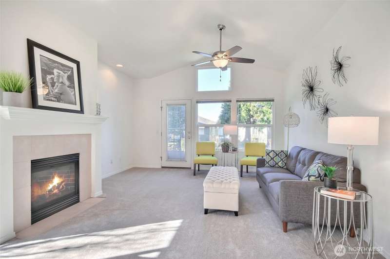 Beautiful & spacious main floor living with NEW interior paint & carpet thru out, new quartz counters in the primary bath & kitchen w/ undermount sinks & new stainless steel appliances! Main floor living w/the primary suite on the main floor along w/ a spacious living rm w/ gas fireplace,dining rm, vaulted ceilings, open to a great kitchen w/lots of cabinets & counter space & big windows for lots of natural light. The primary suite has tall ceilings, big walk-in closet & a beautiful 5 pc bath.Upstairs has a lg loft, 2 spacious bdrms & a 3/4 bath.This home also features a wonderful backyard w/ large patio, main floor laundry room, 2 car garage, gated entry, walk to stores, bus stop, restaurants, & much more!Come take a look-it's worth it!
