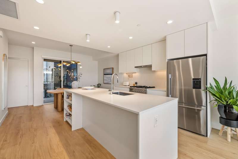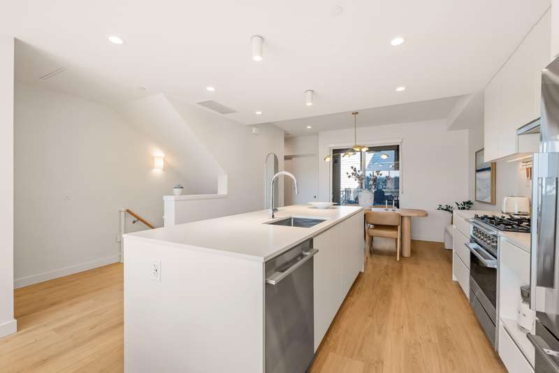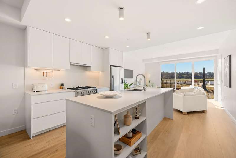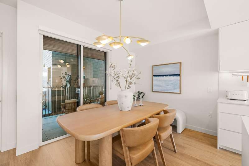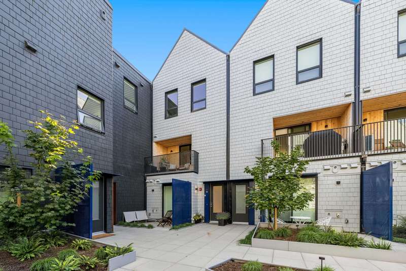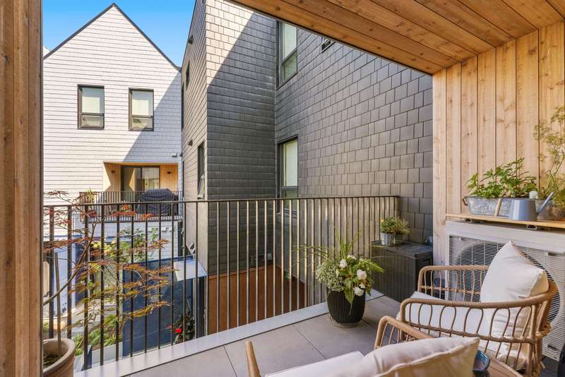 Tucked into the vibrant Southlands community, this immaculate TH is a total mood booster, modern & warm w/ a clean neutral palette throughout. Over 1,350 sf, it’s open & bright, yet completely private. Floor to ceiling windows, 9’ ceilings & vaulted ceilings upstairs, this home is practically brand new without the GST. Live, eat & entertain on your spacious main floor with a powder room + easy access to your covered balcony where you can enjoy a peaceful outlook to the private courtyard. Truly is the heart of this home, the kitchen has a 9’ island w/ stunning matte Quartz counter. FisherPaykel appliances - sweet! Up, 2 big bedrooms, big closets, 2 beautiful baths + flex space that moonlights as a home office. 2 parking, but walk to Four Winds or the beach.