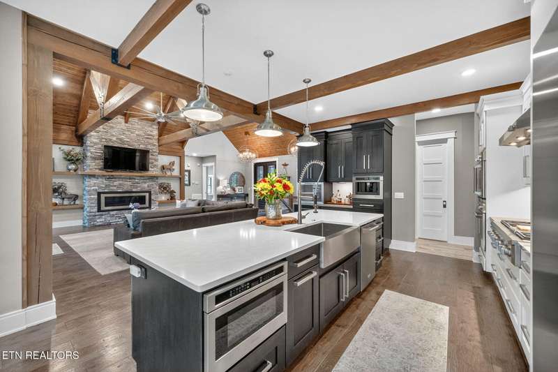 **The Pinnacle of Equestrian Luxury** Welcome to the crown jewel of Rock House Ranches - where world class equestrian living meets timeless mountain luxury. This 4-bedroom, 3.5-bath estate spans over 6,397 sq ft of refined craftsmanship, highlighted by 8' solid hand-scraped Amish hardwood flooring, Shaw designer carpet, and travertine stone finishes throughout. As you walk through this grand estate you have a beautiful stone gas fireplace in the great room. The vaulted ceilings create a living experience that's both grand and grounded. Step outside and picture yourself sitting next to another massive stone wood burning fireplace on the back patio. As you continue to explore the 26 acres you'll find a private equestrian setup complete with a massive barn, workshop/living quarters, fenced pastures, and riding arena. The barn currently has 4 stalls, with the availability for 7. The professional landscaping, fire pit, and private horse trails make outdoor living just as impressive as what's inside This is more than a home, it's a legacy.