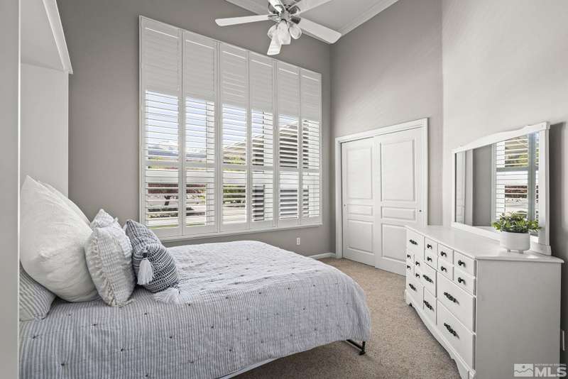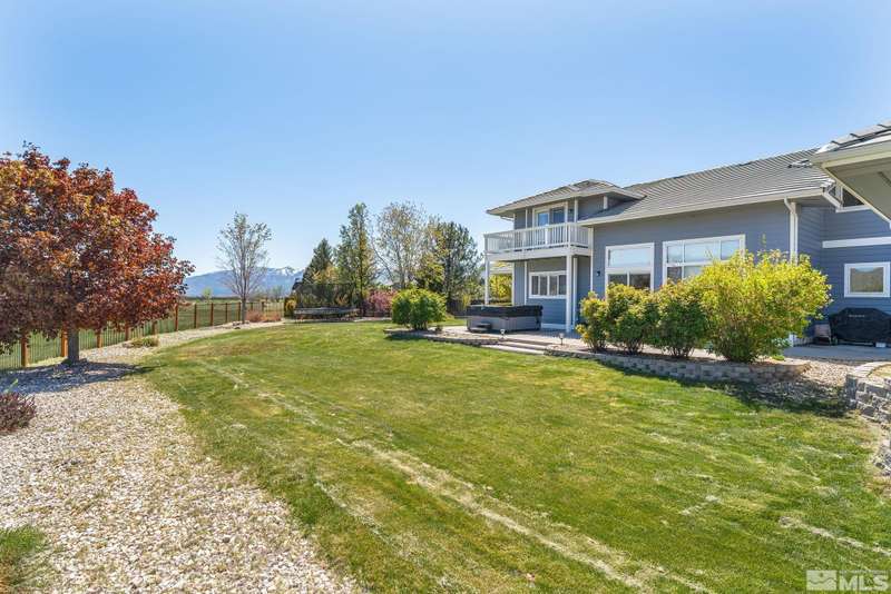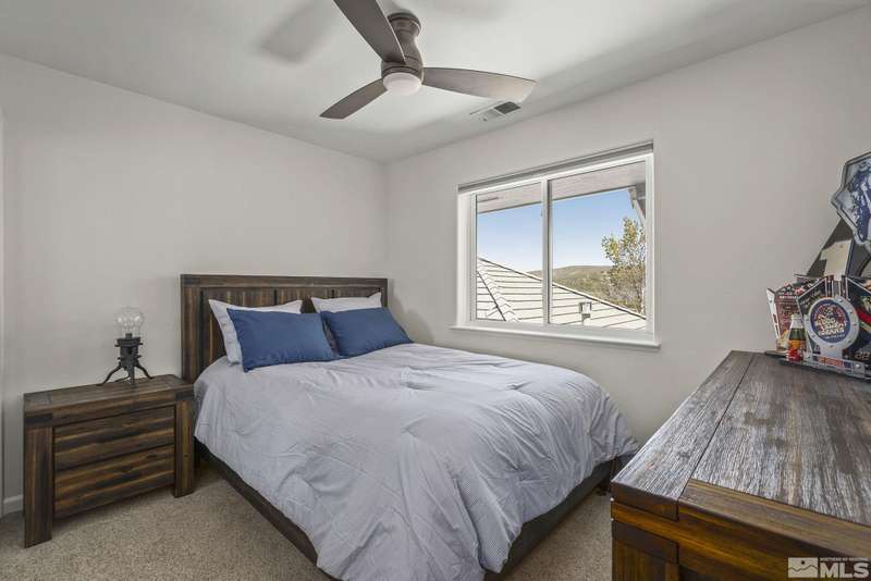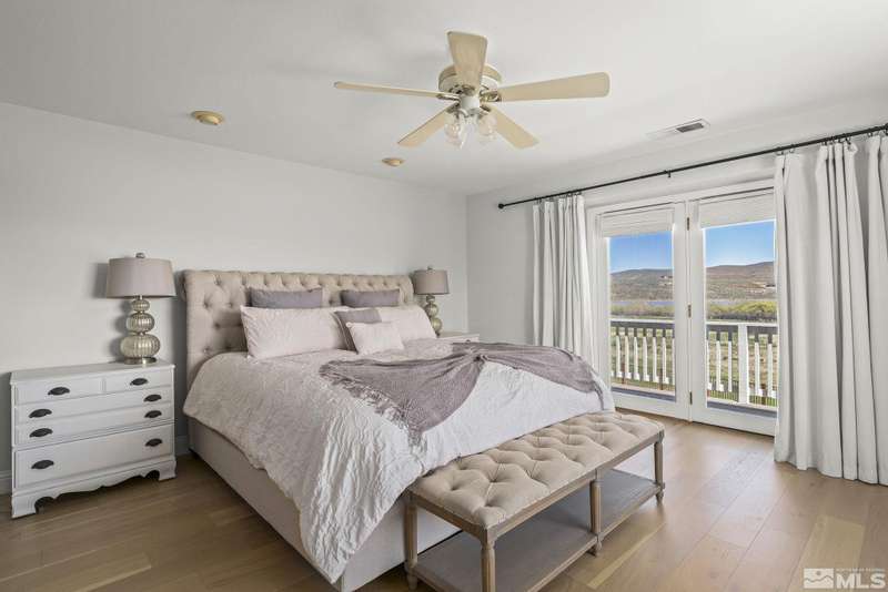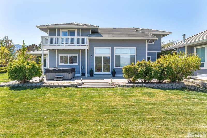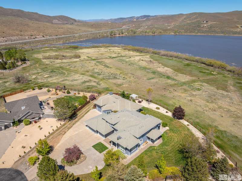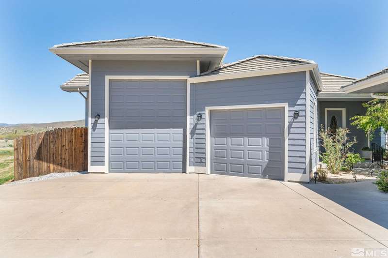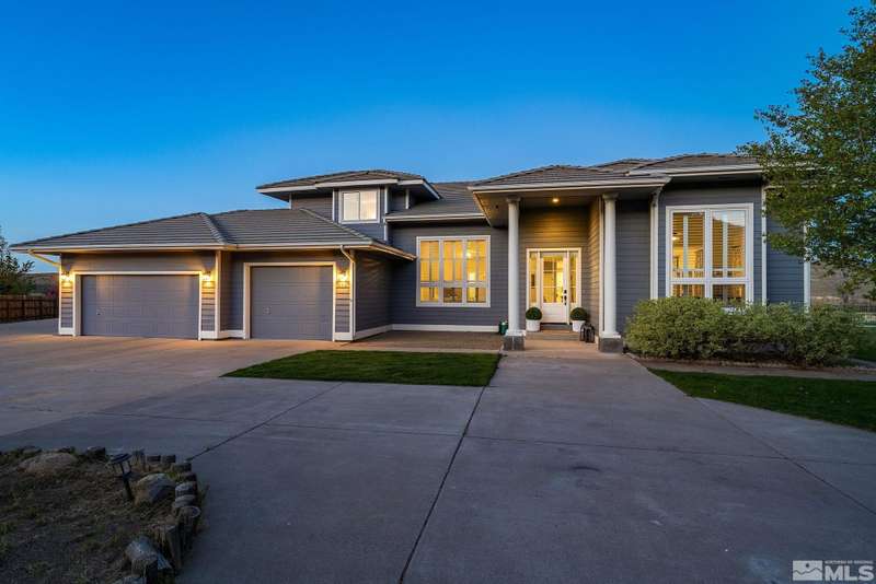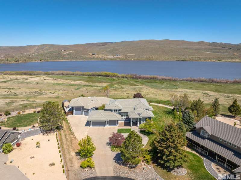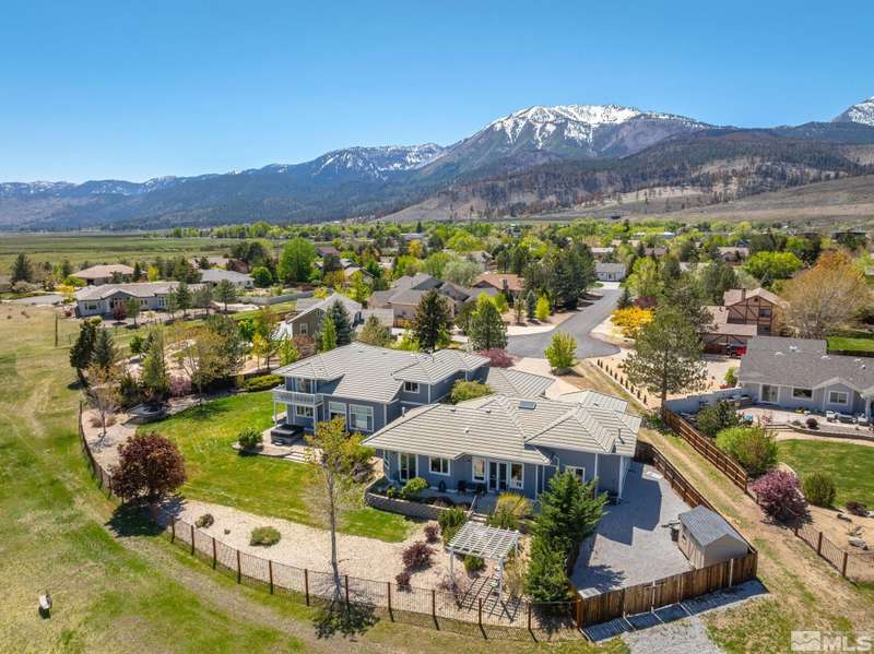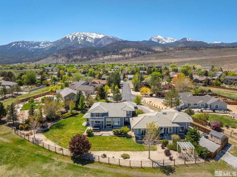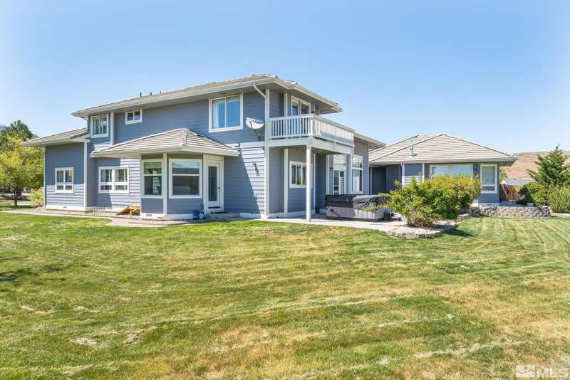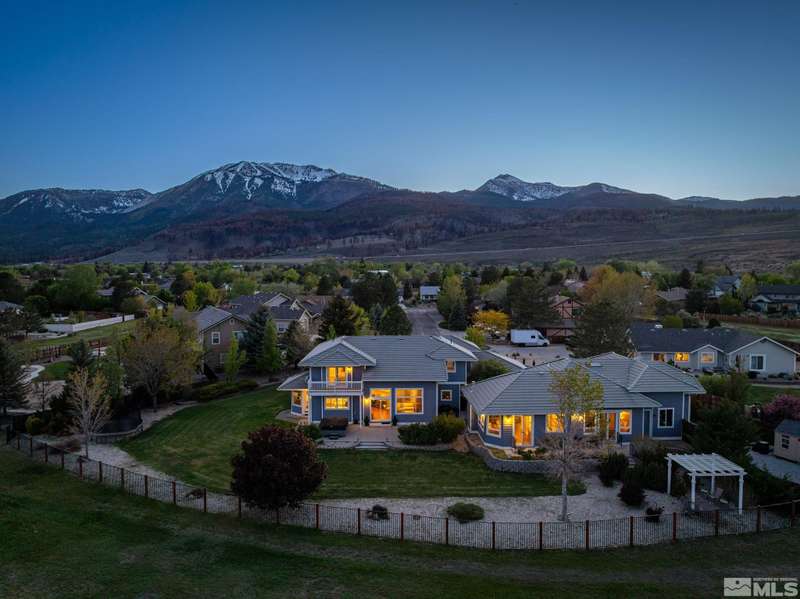 Welcome to your private retreat in the exclusive, gated Old Washoe Estates—offering sweeping lake and valley views on a peaceful cul-de-sac. This beautifully reimagined estate spans 0.63 acres and features a fully remodeled 4-bedroom, 3-bath main residence (approx. 3361sqft), paired with a separate 1-bedroom, 1-bath guest house (approx. 1,154 sq ft) with private patio, fireplace, and its own garage with RV parking., Completely remodeled with a redesigned first-floor layout, this home showcases elegant upgrades throughout—including custom kitchen and bathroom renovations, Hunter Douglas window treatments, and a new HVAC system (2019) for year-round comfort. Thoughtful details abound: custom closet systems in every room, a built-in home office, and a luxurious Caldera hot tub—ideal for relaxing under the stars. The garage features sealed floors for durability, and a side yard storage shed adds convenience. Step outside to enjoy the newly fenced backyard (2022), complete with breathtaking views of the lake and valley. Located at the end of a peaceful cul-de-sac, this property also includes a private guest house—perfect for guests or multigenerational living—with its own fireplace, patio, garage, and RV parking. Set on 0.63 acres with 7 total parking spaces, this home is designed for both entertaining and everyday living. Direct access to walking trails and green space enhances the lifestyle, while secure, gated RV storage ensures room for all your outdoor adventures. Ideally located between Reno and Carson City, this sanctuary offers the perfect balance of privacy, luxury, and convenience.