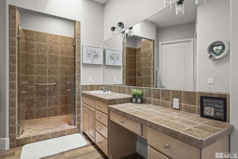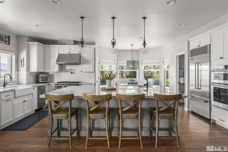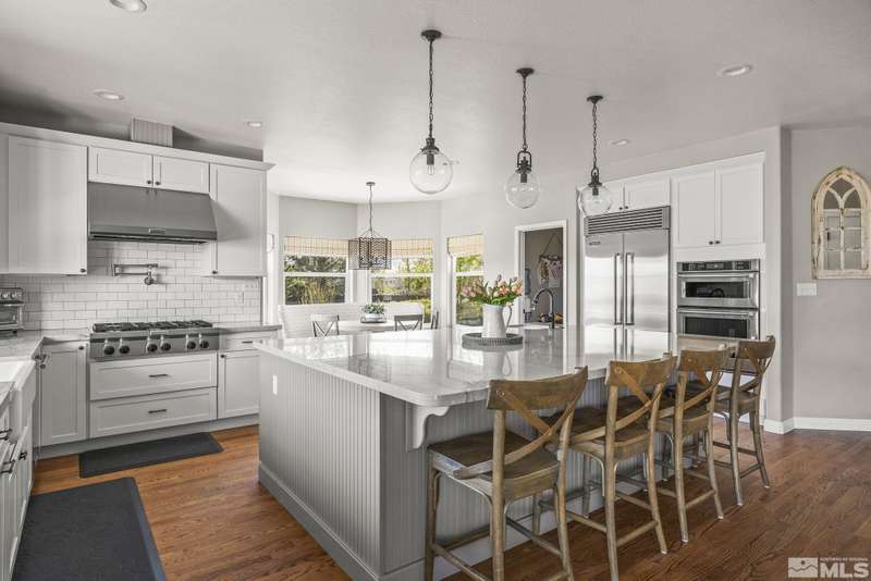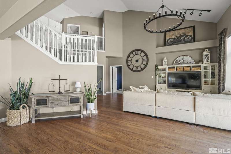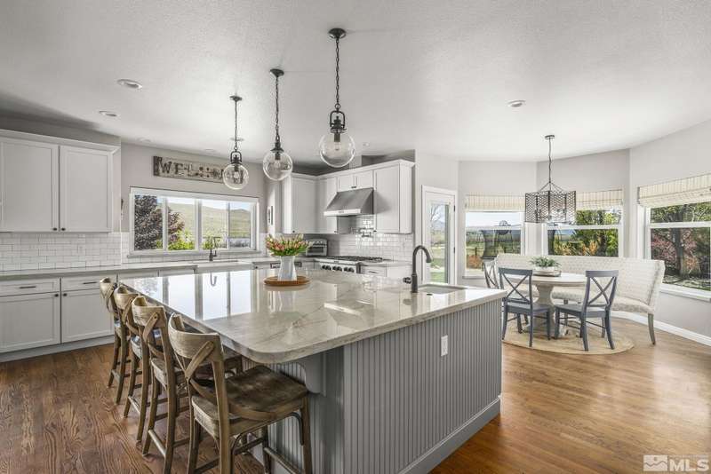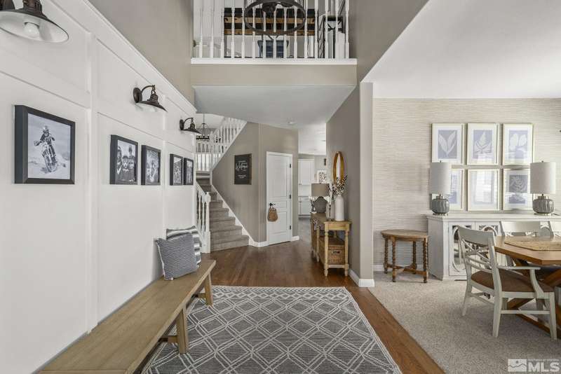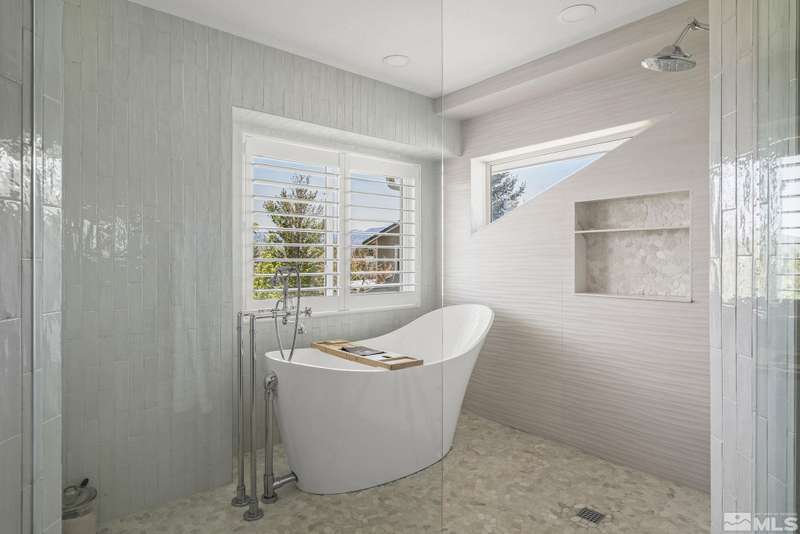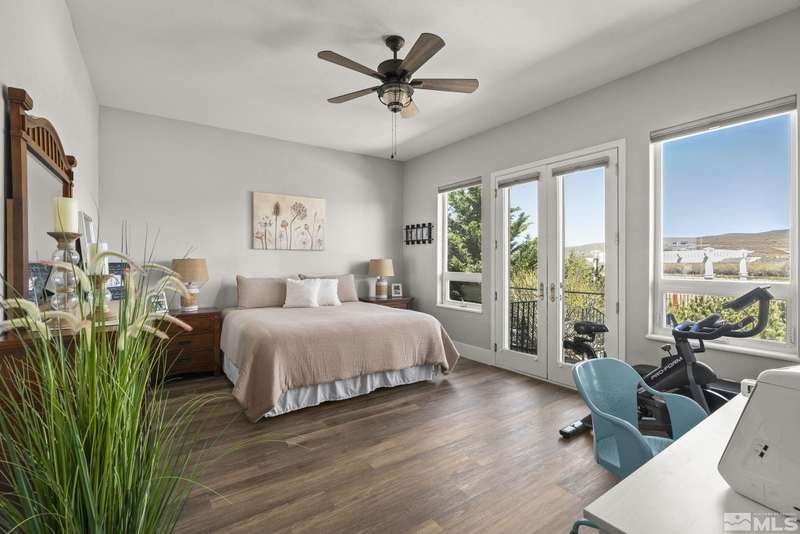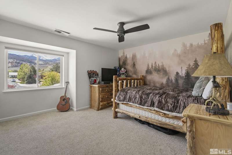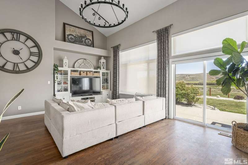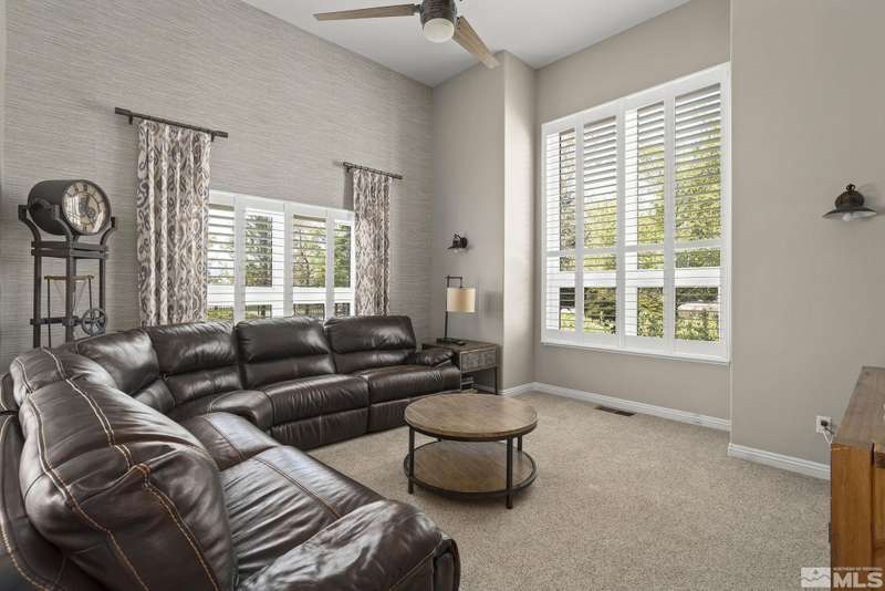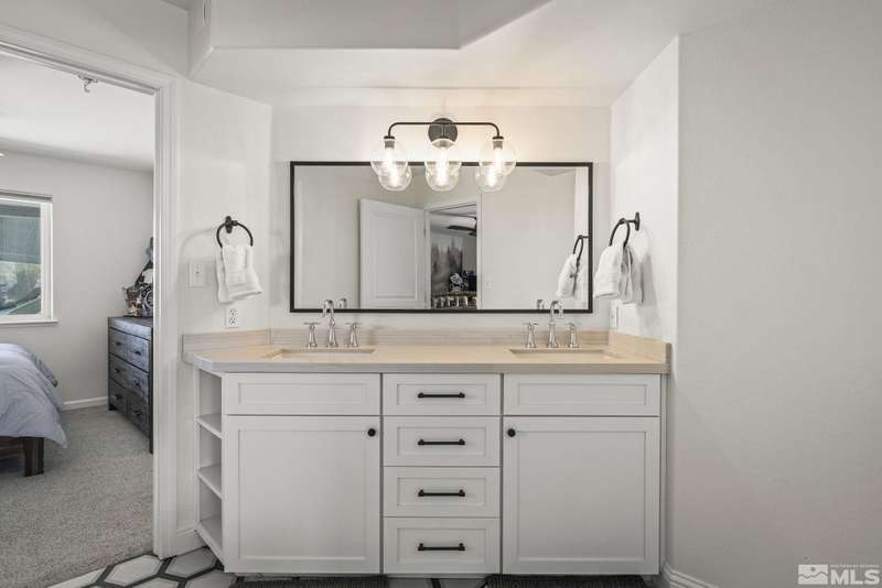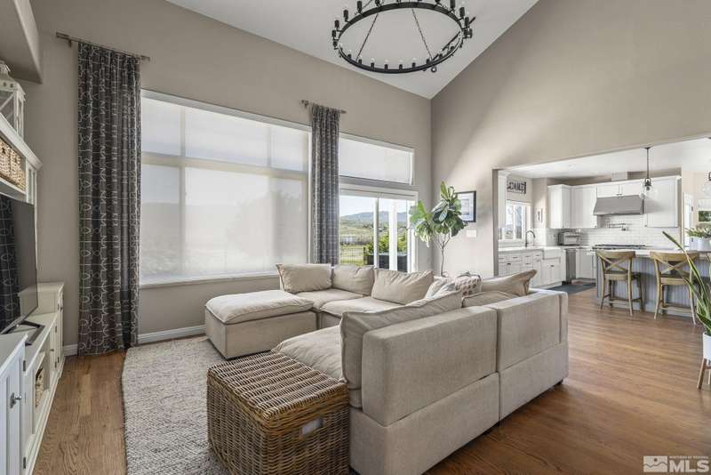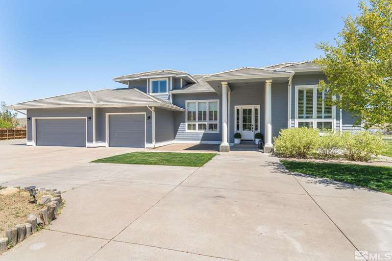 Welcome to your private retreat in the exclusive, gated Old Washoe Estates—offering sweeping lake and valley views on a peaceful cul-de-sac. This beautifully reimagined estate spans 0.63 acres and features a fully remodeled 4-bedroom, 3-bath main residence (approx. 3361sqft), paired with a separate 1-bedroom, 1-bath guest house (approx. 1,154 sq ft) with private patio, fireplace, and its own garage with RV parking., Completely remodeled with a redesigned first-floor layout, this home showcases elegant upgrades throughout—including custom kitchen and bathroom renovations, Hunter Douglas window treatments, and a new HVAC system (2019) for year-round comfort. Thoughtful details abound: custom closet systems in every room, a built-in home office, and a luxurious Caldera hot tub—ideal for relaxing under the stars. The garage features sealed floors for durability, and a side yard storage shed adds convenience. Step outside to enjoy the newly fenced backyard (2022), complete with breathtaking views of the lake and valley. Located at the end of a peaceful cul-de-sac, this property also includes a private guest house—perfect for guests or multigenerational living—with its own fireplace, patio, garage, and RV parking. Set on 0.63 acres with 7 total parking spaces, this home is designed for both entertaining and everyday living. Direct access to walking trails and green space enhances the lifestyle, while secure, gated RV storage ensures room for all your outdoor adventures. Ideally located between Reno and Carson City, this sanctuary offers the perfect balance of privacy, luxury, and convenience.