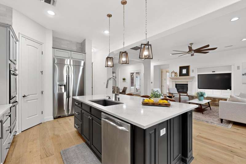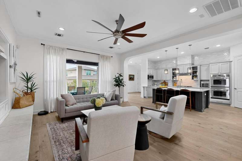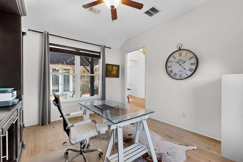 Sitting on almost .4 acres, this Rough Hollow Retreat-once a Grand Haven model home and featured on HGTV-offers a lifestyle that transcends the ordinary. Set on a premier corner lot and upgraded with over $207K in curated enhancements, this residence blends modern luxury with timeless design. A Culinary Haven open-concept kitchen is designed for gathering and entertaining, with professional-grade appliances, built-in refrigerator, double ovens, custom coffee station, and wine fridge with bar cabinetry. It flows into the great room and informal dining, framed by European oak floors and designer finishes. The main level hosts the owner's suite with French doors to the patio, spa-like bath with steam shower, jetted soaking tub, hidden TV mirror, and dual walk-in closets. A private study with custom built-ins, two additional bedrooms, and a versatile flex room provide space for yoga, studio, guests, or retreat. The second floor offers a game room, wet bar with fridge, half bath, and a movie room with 10' projector screen, pocket doors, theater lighting, and surround sound. Three outdoor spaces define the lifestyle. A courtyard with pergola, waterfall, fireplace, and lighting sets the tone for gatherings. In back, a covered patio with built-in grill, refrigerator, and sound system makes entertaining effortless. A spacious upper balcony captures sweeping Hill Country views and spectacular sunsets. Residents enjoy resort-style amenities including a private marina and lakeside restaurant, four pools with lazy river, tennis and sport courts, bocce, sand volleyball, soccer fields, dog park, playgrounds, 23 miles of trails, and a full-time lifestyle director. Minutes from championship golf, Bee Cave and Lakeway shopping, dining, and Lake Travis ISD schools, this home is move-in ready! Also, available for Lease!