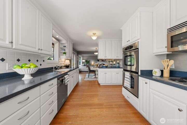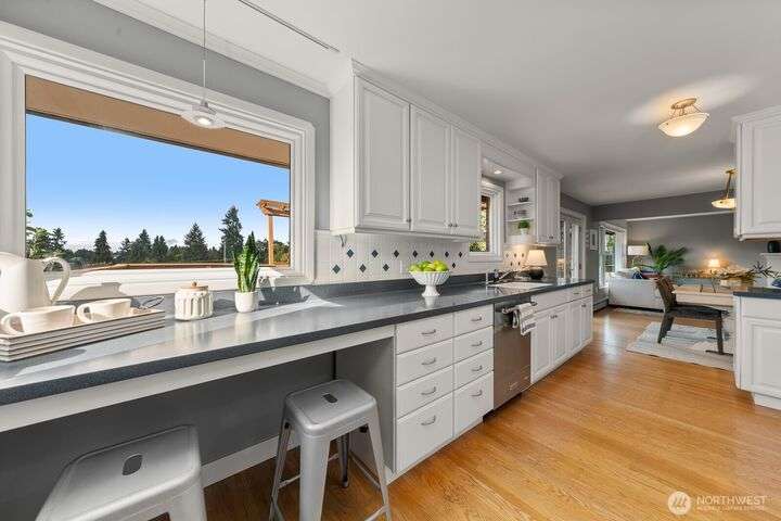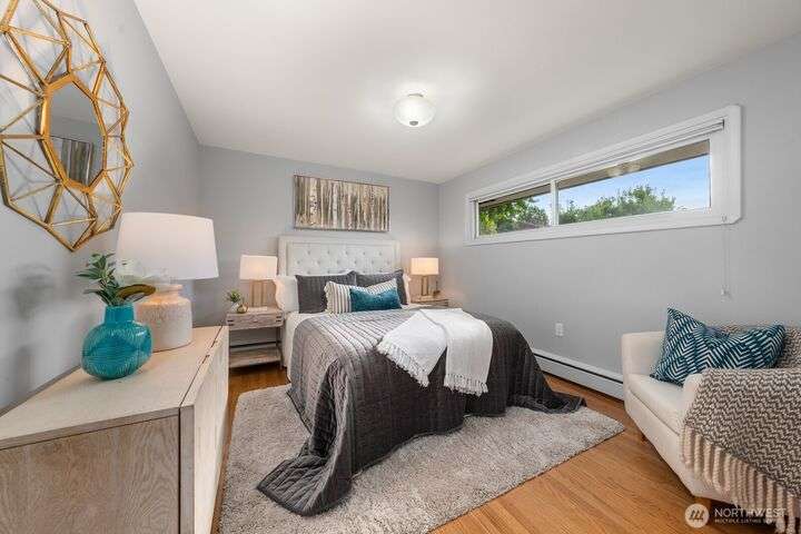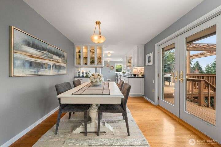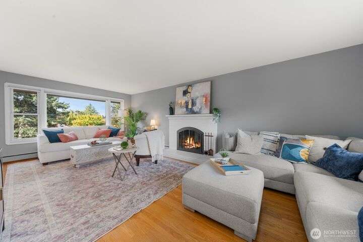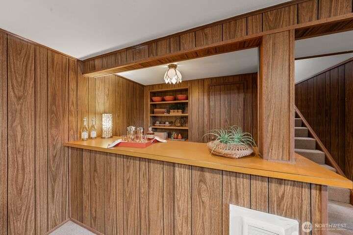 Welcome to an updated mid-century home! Large kitchen open to the dining and living room. Hardwood floors on main level and primary bedroom. Main floor bedrooms & upstairs have new carpet installed in 2024. Large windows in living room so lots of light! Huge deck off of living room! House was rewired in 2023, has copper plumbing, new waterline in 2022 and backyard fence replaced in 2020. 2 bedrooms on main floor with full bathroom. 2 bedrooms upstairs with large updated bathroom and lots of closets! Lower level has a cozy room with fireplace, ½ bath, and lots of storage space. Quiet neighborhood near a couple of parks and in a great school district!