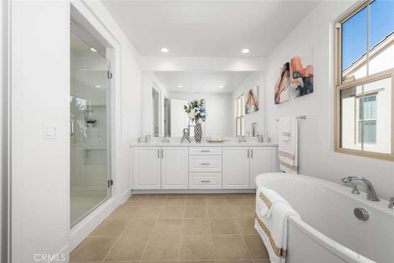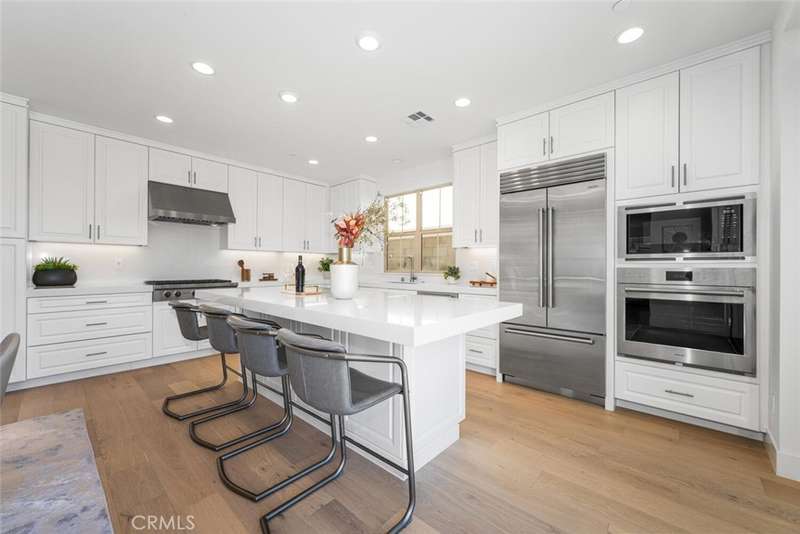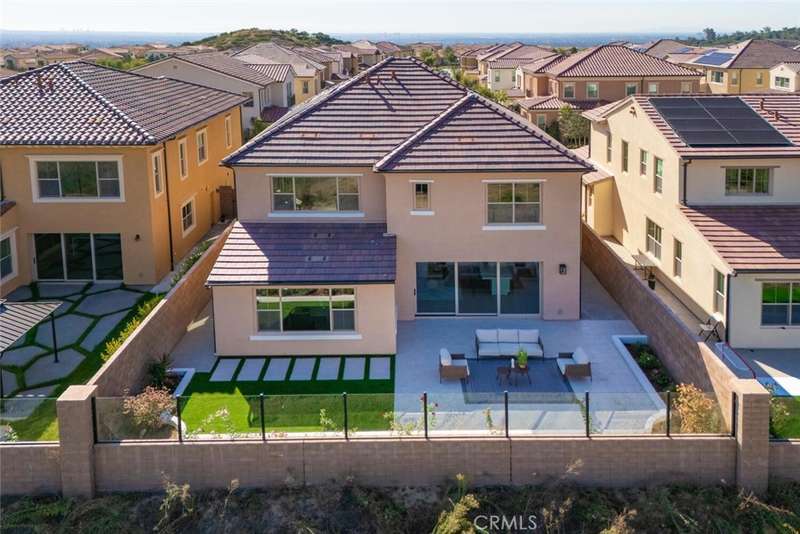 Experience the best of Irvine living in this never-lived-in residence located in The Reserve at Orchard Hills, a 24-hour guard-gated community surrounded by avocado orchards and hillside trails. Part of the award-winning Irvine Unified School District, this home combines architectural elegance, natural light, and thoughtful design within one of Orange County's most sought-after neighborhoods. Capturing unobstructed mountain views, the residence embraces seamless indoor-outdoor living through an expansive three-panel sliding glass wall that opens to a custom backyard with tiled patio, turf, gardens, and irrigation system. Inside, every detail is intentional--white-oak engineered hardwood floors, recessed lighting, and 9-foot ceilings create a bright and refined atmosphere. The chef's kitchen is equipped with a Wolf 6-burner cooktop, Sub-Zero refrigerator, built-in oven and microwave, deep pantry, quartz countertops, and soft-close cabinetry with pot-and-pan drawers. The open-concept layout connects the kitchen, great room, and outdoor living area--ideal for gatherings and relaxation alike. The main-floor bedroom includes a nearby full bath with walk-in shower, offering flexibility for guests or multi-generational living. Upstairs, a spacious loft provides a secondary retreat for TV, study, or play. The primary suite features vaulted ceilings, a walk-in closet, freestanding soaking tub, dual vanities, and a designer tile walk-in shower with invisible drain. The upstairs laundry room includes a sink and additional cabinetry for convenience. Additional highlights include fully paid solar panels, smart-home capable, tankless water heater, and epoxy-finished garage floor. Residents enjoy resort-style amenities--clubhouse, multiple pools, parks, tot lots, and scenic walking trails. Ideally located approx 0.8 mi to Orchard Hills Shopping Center (Pavilions, Peet's Coffee, CorePower Yoga, CVS), approx 1.2 mi to H-Mart, and approx 2 mi to CA-241 Toll Road for convenient access throughout Orange County. The Reserve at Orchard Hills offers a lifestyle immersed in nature and design. Winding trails connect to open spaces that capture the spirit of Irvine. Nearby amenities complement the area's tranquil setting, while the home's location ensures privacy and peace. With its fusion of modern innovation, timeless materials, and connection to landscape, 107 Somera represents the best of new Irvine living.