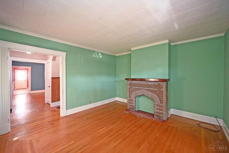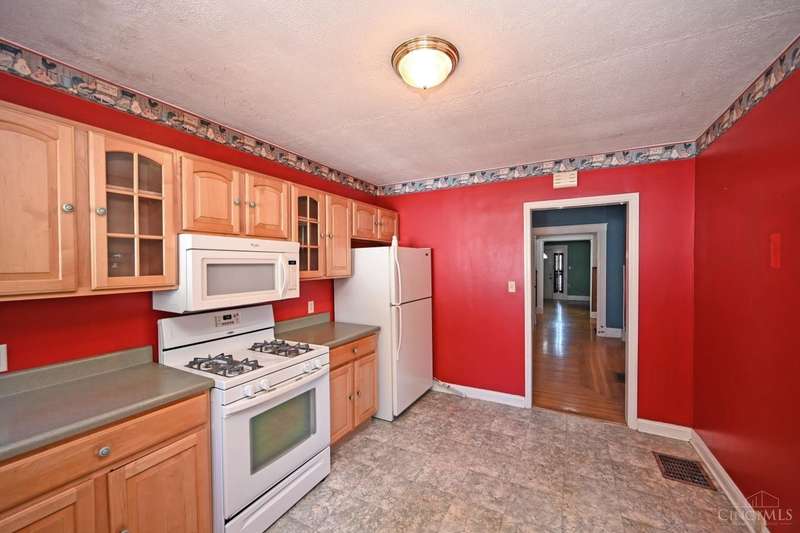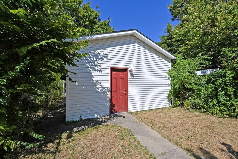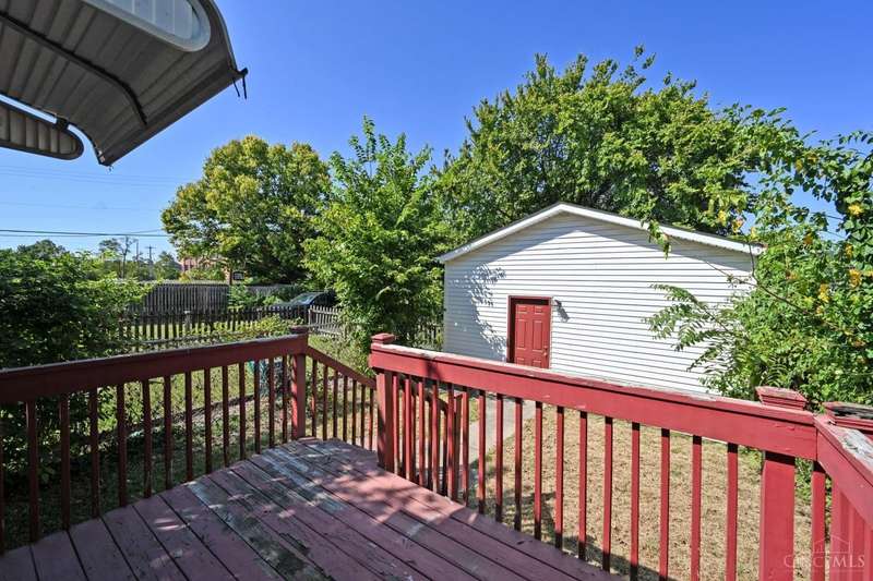 Charming 2-bedroom, 1-bath home with a welcoming covered front porch. Step inside to discover beautiful picture-framed hardwood floors and soaring ceilings that add to the space's airy feel. The spacious eat-in kitchen opens to a back deck, perfect for entertaining, and a fully fenced yard for privacy. Two generously sized bedrooms can be found on the second floor. The oversized 2-car garage is conveniently located off the street behind the home. The unfinished basement offers excellent storage space with the potential for additional living areas. Recent updates include HVAC installed in 2020. Estate sale, property is being sold as-is.