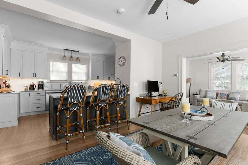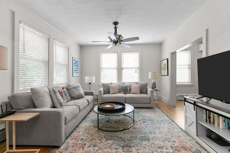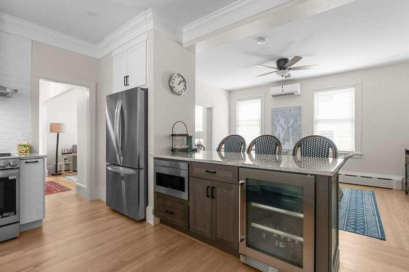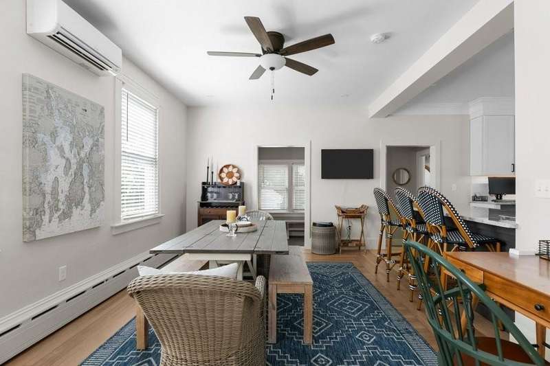 Welcome to this tastefully renovated, lightfilled 3-bedroom, 2.5-bath home located in a quiet, desirable neighborhood close to Broadway and a short bike ride to the beach and downtown Newport. Featuring hardwood floors throughout, the open-concept layout offers a seamless flow from the bright dining area to the high-end modern kitchen, complete with sleek finishes and top-quality appliances. The furnishings are modern and comfortable. Master bedroom with ensuite bath, 2 more bedrooms and the second bath are located on the second floor. The first floor has a well placed minisplit and the second floor has central airconditioning. Additional conveniences include a detached garage and a deck overlooking the yard. Minimalistic in design yet rich in comfort, this home provides a tranquil retreat while keeping you close to everything you need. Sorry, no smoking, a dog may be considered on a case by case basis.