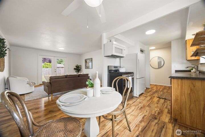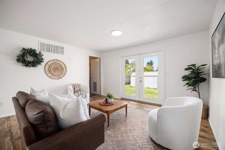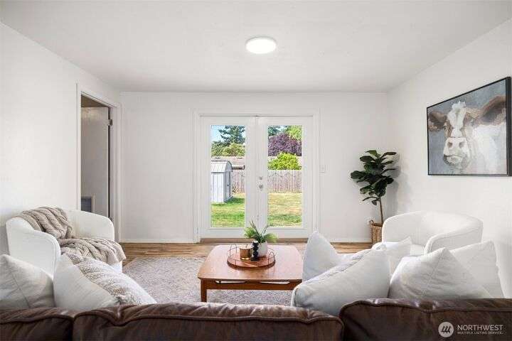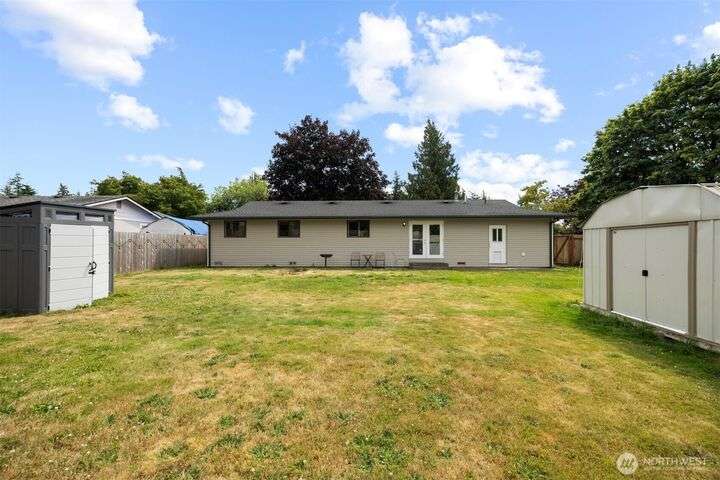 Been waiting for a cute home in a quiet neighborhood at a great price? Well, this 4-bed/1.75-bath single-level charmer has got you covered! Layout maximizes the square-footage with a kitchen connected to a dining area that opens to the large living room. From there, French doors lead you to the big, fully-fenced back yard w/ patio and 2 storage/garden sheds. Primary bedroom features en-suite 3/4 bath to go with 3 guest beds and full guest bath. New interior/exterior paint throughout and freshly serviced ducting. All this with an attached 1-car garage on a flat, sunny lot just minutes from both Bellingham and the border!