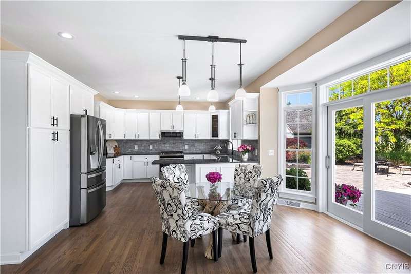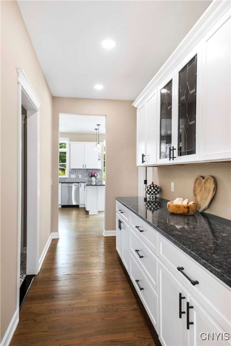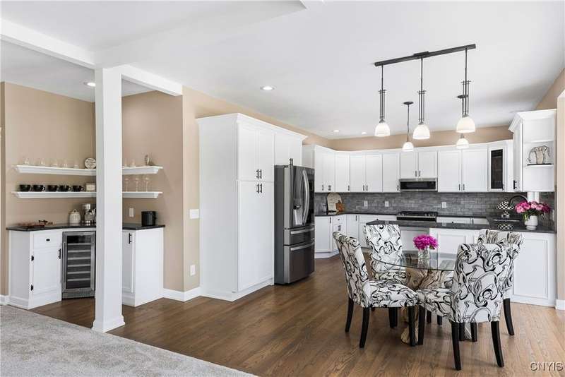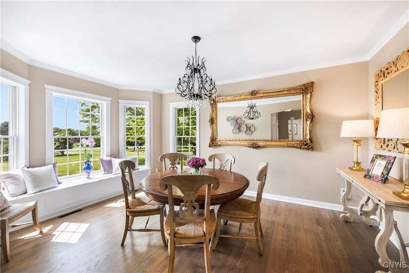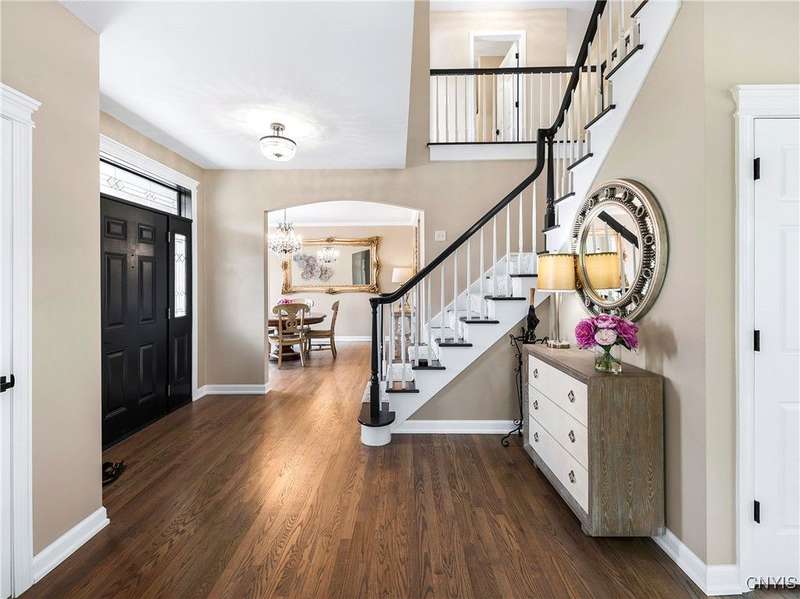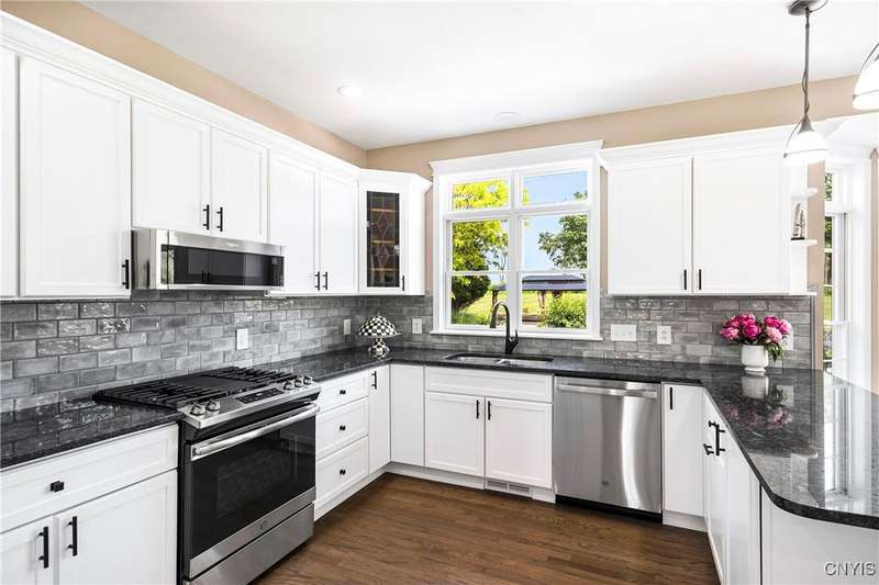 This magnificent custom-built Colonial residence is situated on over 18 acres of land, surrounded by beautifully landscaped grounds that enhance its overall curb appeal. The property features 4-5 bedrooms, two full bathrooms, and one half bathroom. As you step inside, you are greeted by a welcoming foyer, formal dining and living areas, and a recently updated kitchen with a convenient coffee station that flows into the cozy family room with a gas fireplace. The family room is bright and airy with plenty of windows and sliders that open up to the spacious back deck overlooking the lush yard. Additional amenities include a butler's pantry, mudroom with hooks, and a half bathroom. Upstairs, you will find a laundry room, a primary bedroom with an updated ensuite bathroom featuring a double vanity, soaking tub, tiled shower, water closet, and walk-in closet. There are also three more bedrooms, a bonus room above the garage that can serve as a fifth bedroom or office, and another updated full bathroom. The finished lower level offers an additional 1000 square feet of living space with a gas fireplace. Located in the award-winning Skaneateles school district and just a short drive away from schools and the village center, this exceptional property is truly a gem.