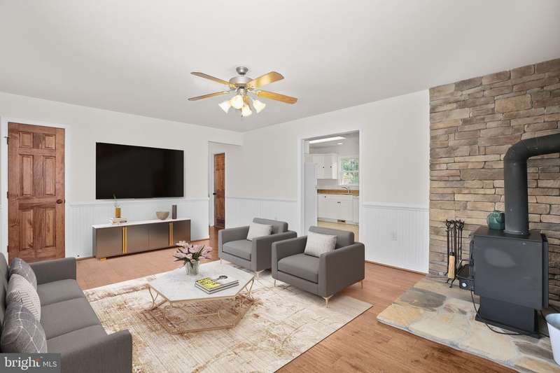 Nestled on a sprawling 35.55-acre farm, this charming bungalow-style home offers a perfect blend of comfort and functionality. Built in 2011, the residence features a traditional floor plan with two inviting bedrooms (the front room can be divided to make this a 3 bedroom home) and two full bathrooms, including a primary bath with a walk-in shower. The heart of the home is the spacious kitchen, complete with eat-in dining and a cozy family room that flows seamlessly for entertaining. Enjoy the warmth of the wood-stove on chilly evenings, while the hardwood floors throughout add a touch of elegance. Step outside to discover a serene outdoor oasis-your own slice of paradise. The property boasts a picturesque pond providing a tranquil view from your front porch. Horse enthusiasts will appreciate the dedicated amenities, including a stable and paddock and pastures, making it easy to indulge in equestrian pursuits. Additional outbuildings offer versatile space for storage or hobbies. Modern conveniences are at your fingertips with essential appliances such as a dishwasher, washer, and dryer, ensuring a hassle-free lifestyle. This property is not just a home; it's a lifestyle. Experience the beauty of nature, the joy of horse ownership, and the comfort of a well-appointed residence all in one remarkable package.