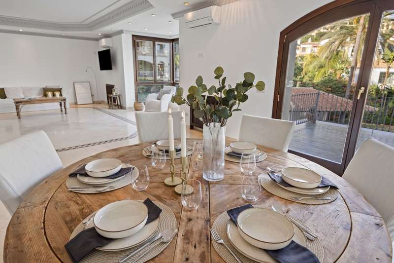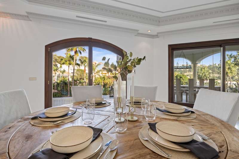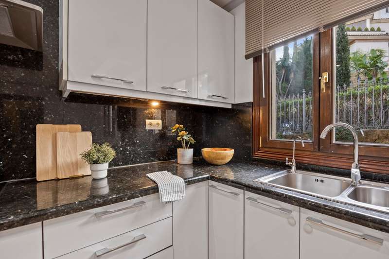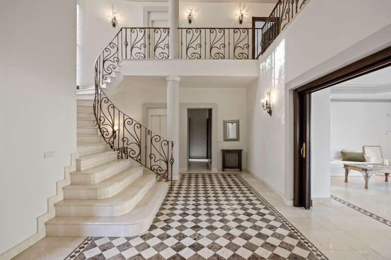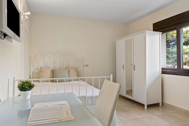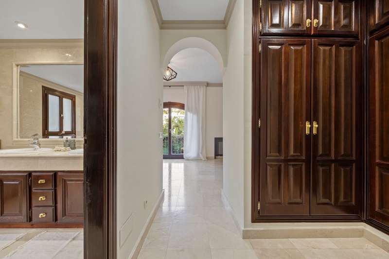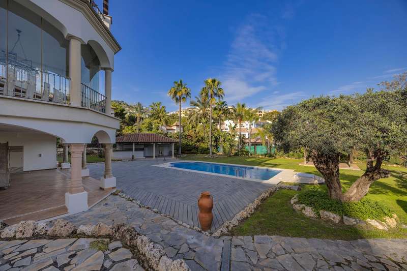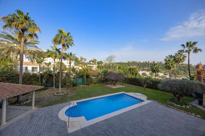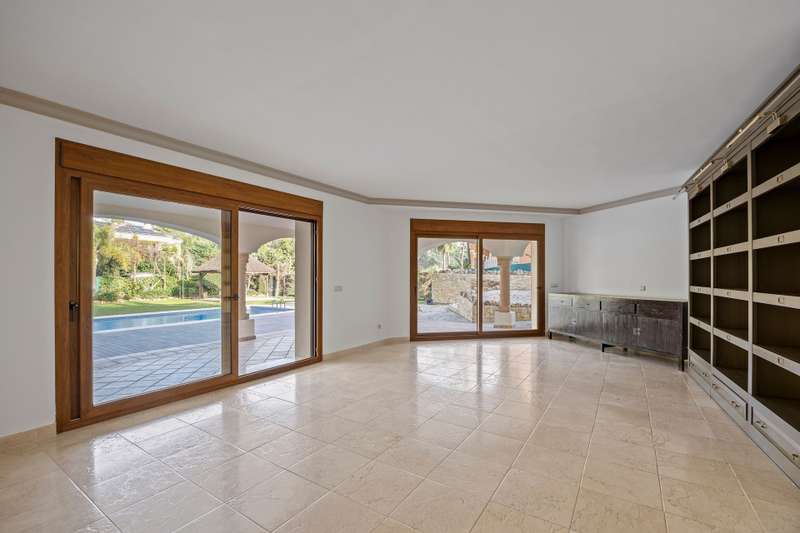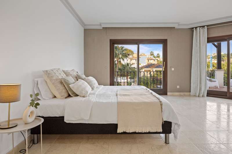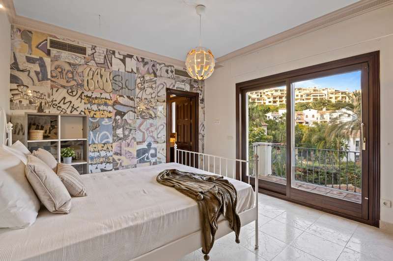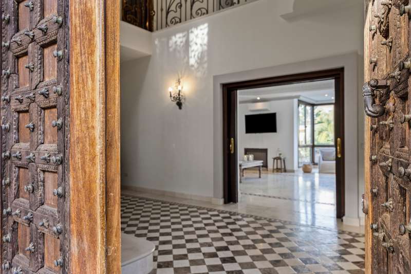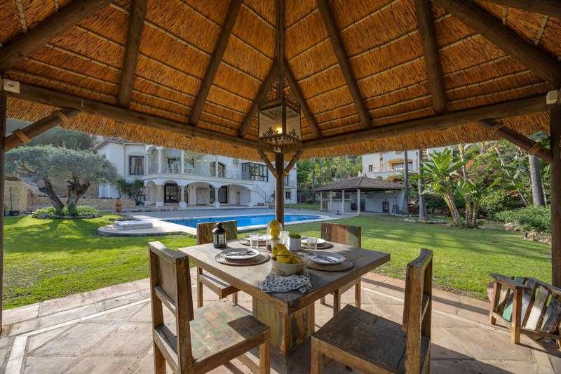 An architectural gem with character and investment potential Step into this remarkable family villa nestled within the prestigious Los Arqueros Golf & Country Club. Boasting a unique architectural design and generous living spaces, this property offers limitless potential—whether for comfortable living or as a high-return investment. The entrance level welcomes you with a grand double-height foyer featuring soaring ceilings and a striking marble staircase. The open layout flows seamlessly into a bright living area comprising a spacious lounge, dining space, and an enclosed terrace ideal as a winter garden. A cozy corner with a fireplace adds warmth and charm. This floor also includes a fully equipped kitchen, a guest toilet, and a bedroom with an en-suite bathroom and direct access to the terrace. Upstairs, the master suite stands out with its private terrace, sunbathing area, and jacuzzi. Two additional en-suite bedrooms each enjoy their own private terraces and ample built-in ward