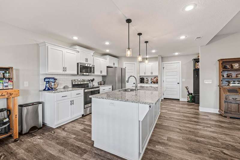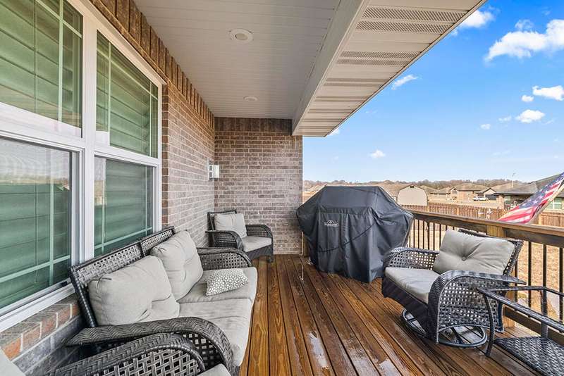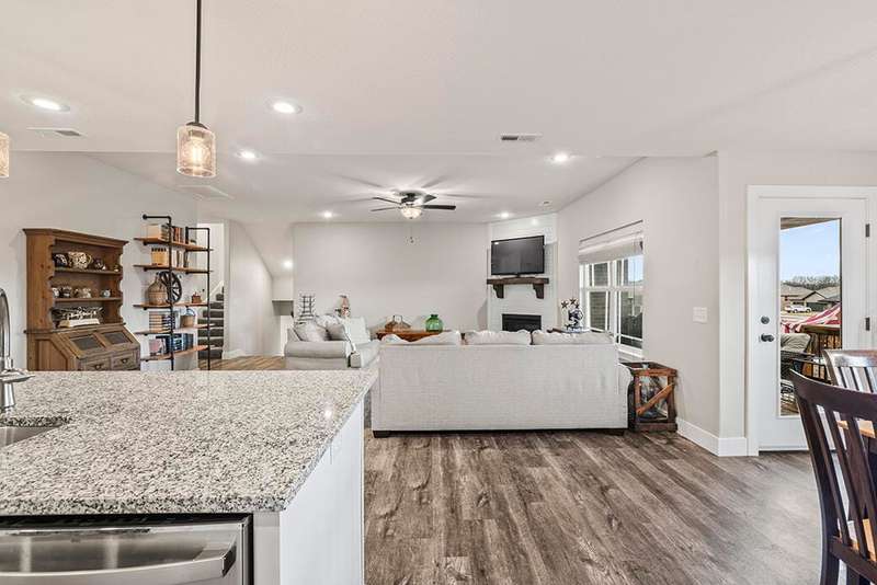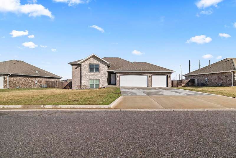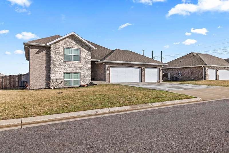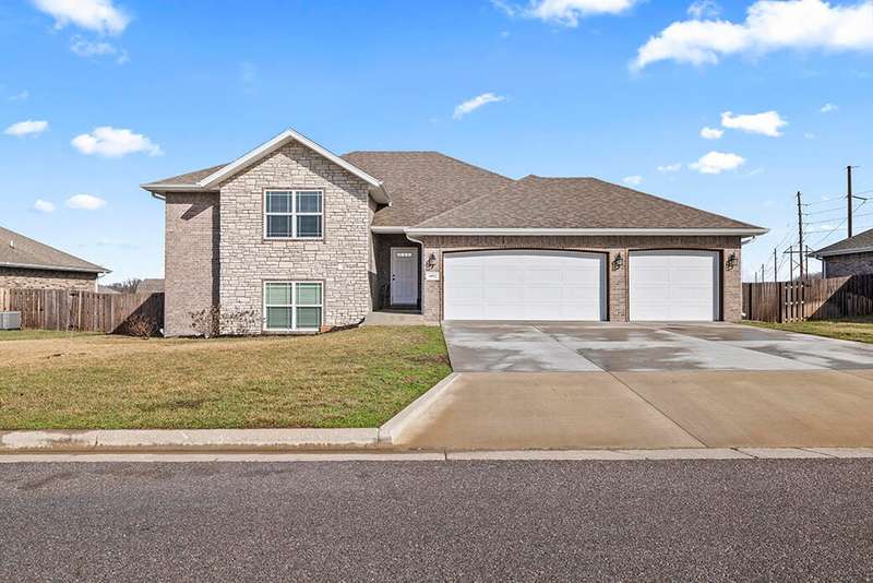 Newer home, built in 2022, with open floor plan, privacy fence, great location in Republic Schools.This beautifully designed all brick, split level home with walkout basement, offers a spacious and functional layout with thoughtful details throughout. The main living area is bright and open, featuring a large kitchen with granite countertops, an oversized island, ample cabinet and counter space, and a pantry. With four bedrooms, two full bathrooms, and a half bath, there's plenty of space to spread out. The primary suite is a retreat of its own, offering a walk-in shower and generous walk-in closet. Two separate living areas provide flexibility for relaxing or entertaining. Built in shelving and ample closets provide plenty of storage solutions. Blinds stay with home.Outside, enjoy a deck overlooking the fully fenced backyardperfect for outdoor enjoyment.
