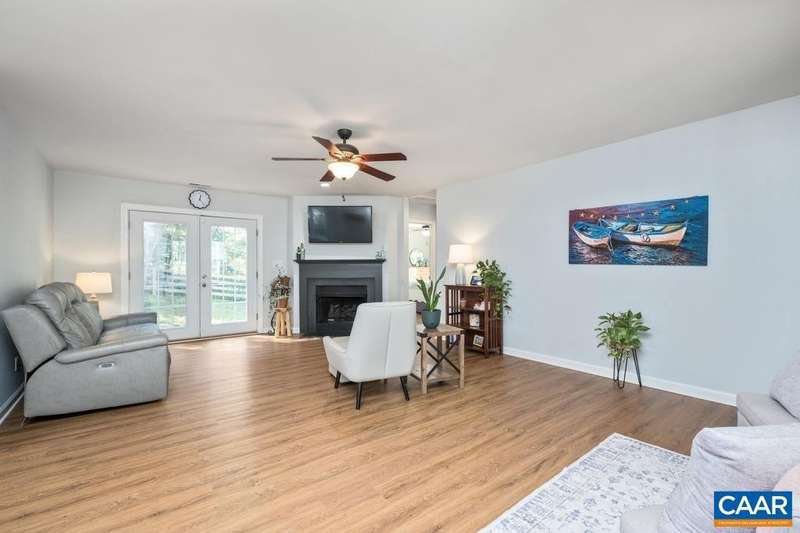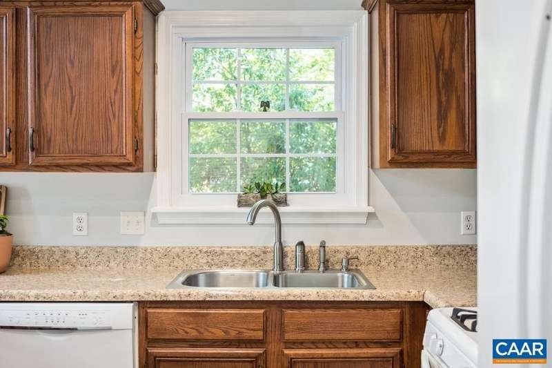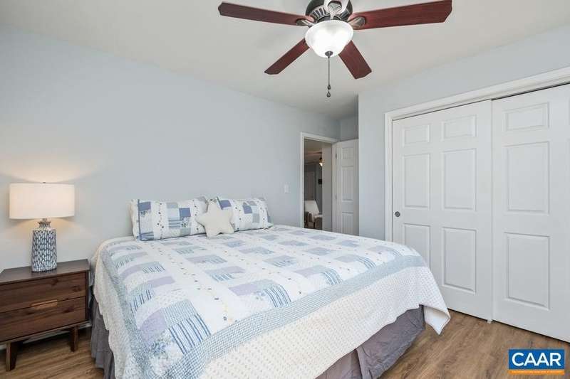 Adorable, lovingly maintained, light-filled cottage in the amenity rich Lake Reynovia community off Avon Street with quick access to 64/250,Downtown and UVA. Fabulous covered front porch with porch swing overlooking the manicured lawn. New luxury vinyl plank flooring throughout the home, and all plumbing updated in 2023. You'll love the expansive kitchen with peninsula seating and freshly stained cabinetry. Large living room features gas fireplace, and opens to the dining area. Two good-sized bedrooms share a remodeled full bathroom with walk-in tiled shower. Encapsulated crawlspace provides 800 sqft of dry locked storage space beneath the home, floored attic space provide even more additional storage, and fenced backyard provides space to run and play!,Wood Cabinets,Fireplace in Living Room
