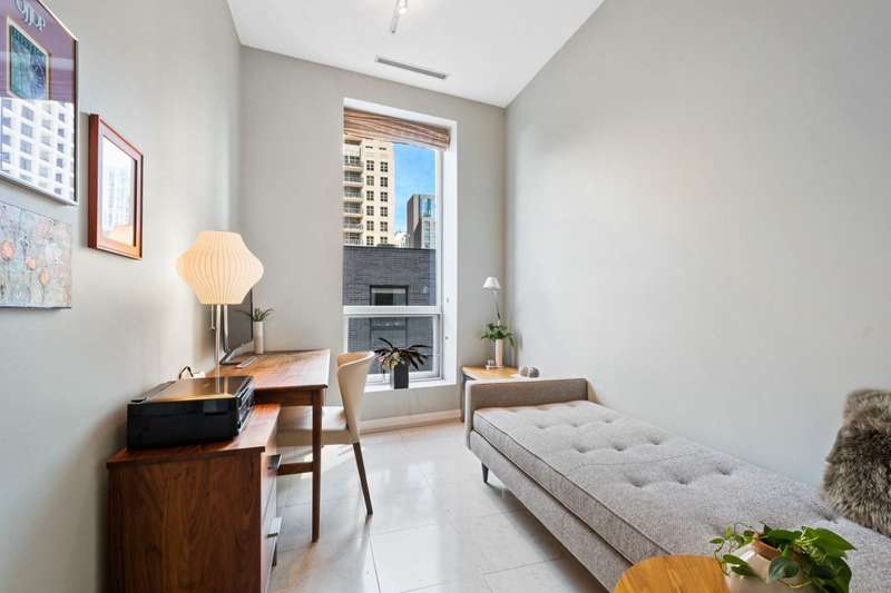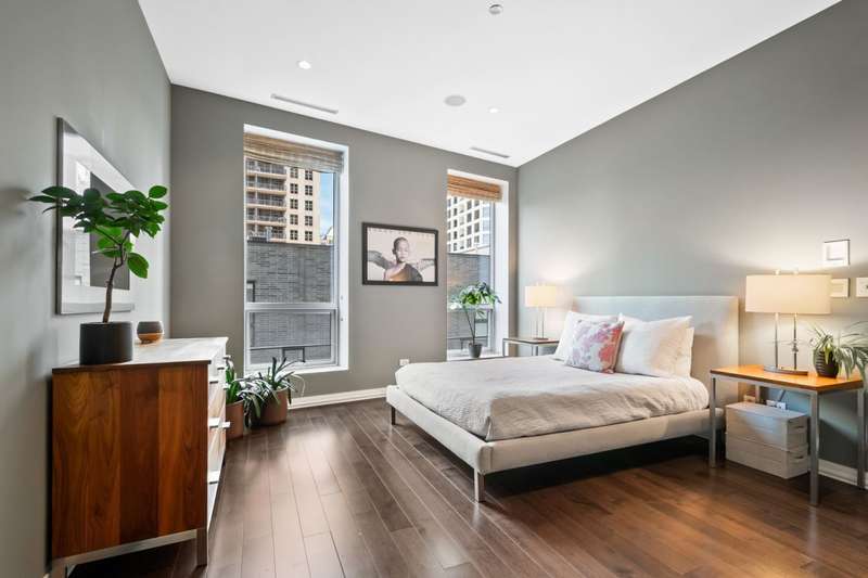 Rare opportunity to own in one of the Gold Coast's most sought-after buildings. This oversized 2-bedroom, 1.1-bath condo offers 11-foot ceilings, honed Bianco white marble floors, custom lighting, and floor-to-ceiling windows with two exposures for abundant natural light. The expansive open living and dining area centers around a stunning Poggenpohl Chicago kitchen, featuring a large quartz-topped island, generous cabinetry, and premium Miele, Thermador, and Sub-Zero appliances-perfect for both everyday living and entertaining. The primary suite showcases espresso-stained hardwood floors, an oversized, fully customized walk-in closet, and a luxurious Calacatta marble bath with striking veining. The second bedroom, finished with Bianco white marble floors, works equally well as a guest room, den, or office. Additional highlights include a full-size washer and dryer, same-floor storage, and one heated garage space. This prestigious, pet-friendly building offers a modern lobby, 24-hour door staff, a fitness center, and a prime location near Chicago's finest dining, shopping, and schools.
