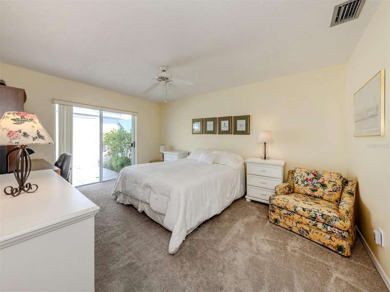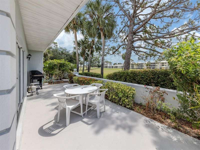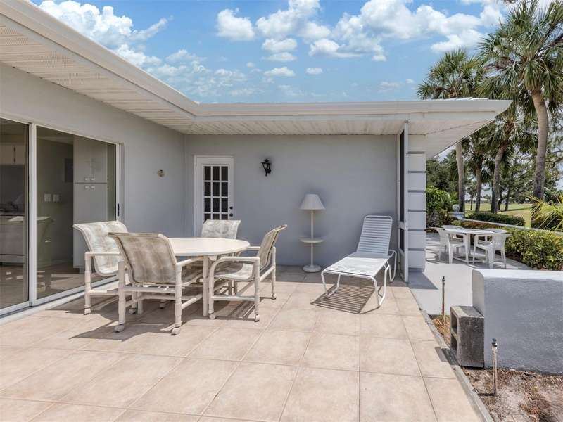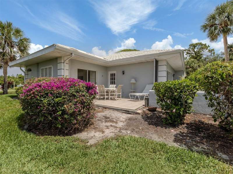 Welcome to this lovely 2-bedroom, 2-bathroom villa in the highly desirable Augusta Villas at Plantation, where charming curb appeal meets picturesque golf course views. This light-filled home offers a spacious and inviting layout, with double sliding glass doors that open to a peaceful back patio overlooking the fairway—perfect for enjoying your morning coffee or an evening sunset. Enjoy the Florida lifestyle to the fullest with three private patios: a serene side patio off the kitchen ideal for al fresco dining, a front courtyard-style patio off the primary bedroom, and the rear patio with sweeping golf course views. Inside, the large eat-in kitchen features granite countertops, ample cabinetry, and plenty of counter space to prep and entertain with ease. The spacious primary suite is a true retreat with direct access to the courtyard patio, an en suite bathroom, and a huge walk-in closet. The second bedroom and bath are perfect for guests or a home office setup. Priced to sell and full of potential, this home is ready for someone to make it their own. Whether you're looking for a winter getaway or a full-time residence, Augusta Villas offers a relaxed, maintenance-free lifestyle in a beautiful golf course community.