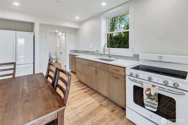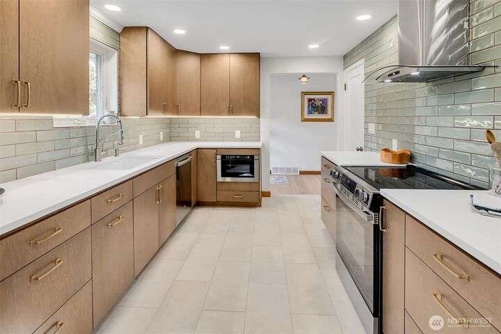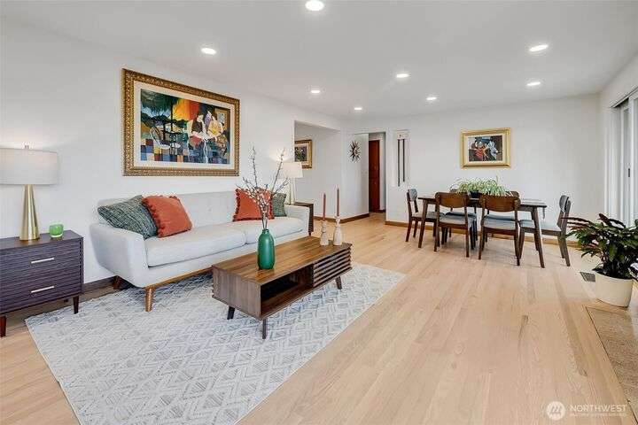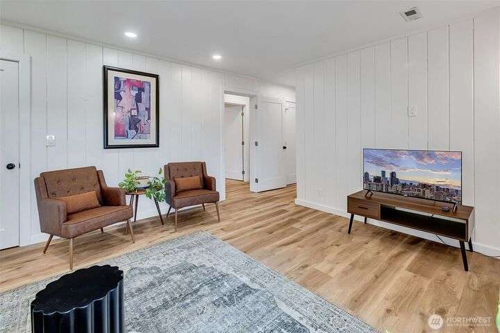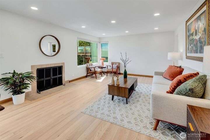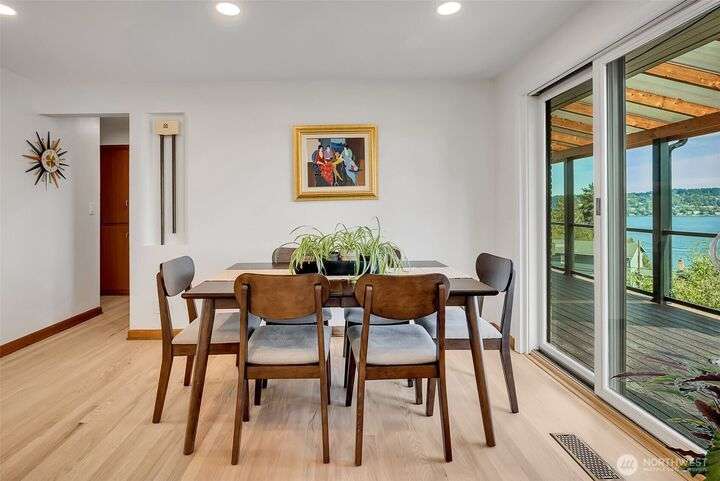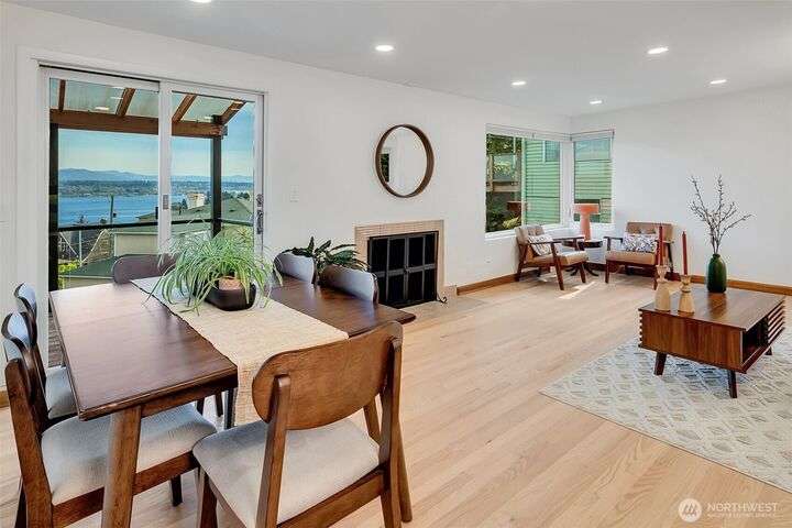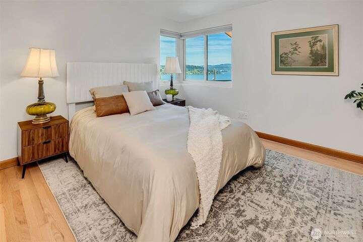 Welcome to this fully renovated home, where no detail has been overlooked. From the moment you step inside, you'll appreciate the refinished wood floors, huge Lake WA views from almost every room & the covered deck. Thoughtfully designed spaces, brand-new kitchens on both levels are perfect for multi-generational living or easy Airbnb. Upstairs, the kitchen boasts gorgeous tilework, new appliances, and a spacious walk-in pantry, two good sized bedrooms and a full new bath. Downstairs, enter into a bright living room with fireplace and huge views, a spacious bedroom w/French doors, separate breakfast bar w/ undermount lighting, new kitchen, spacious bath and laundry room, with a workout room or theater, storage, and a huge fenced yard.