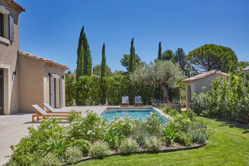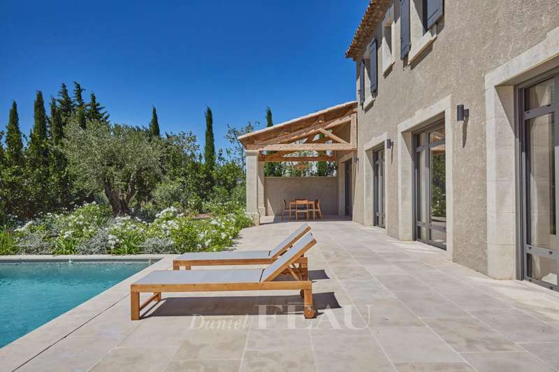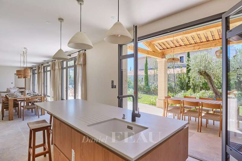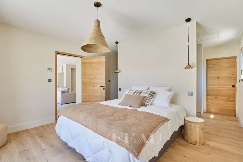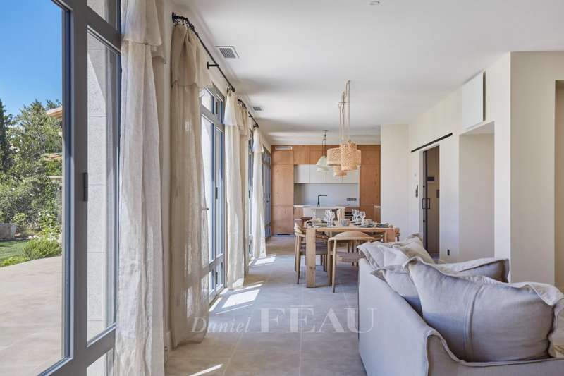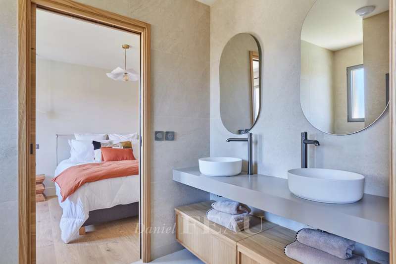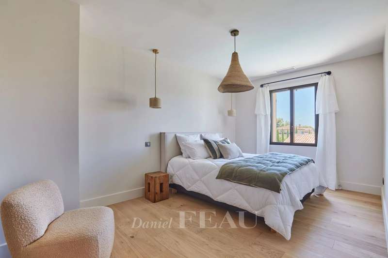 This new 188 sqm property is set in a 750 sqm plot near the centre of the village and the shops. It includes a living/reception room, an equipped kitchen with a dining area, a suite with a bathroom and dressing room accessing the garden. Upstairs are a second suite, two bedrooms and a shower room. The garden features a heated 10 x 3.50 metre swimming pool, a boules pitch, a covered terrace and a garage. Reduces notary fees.