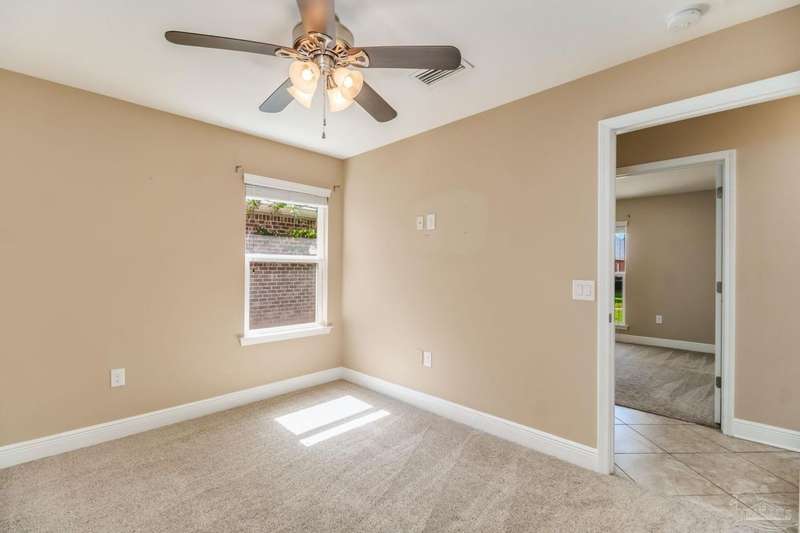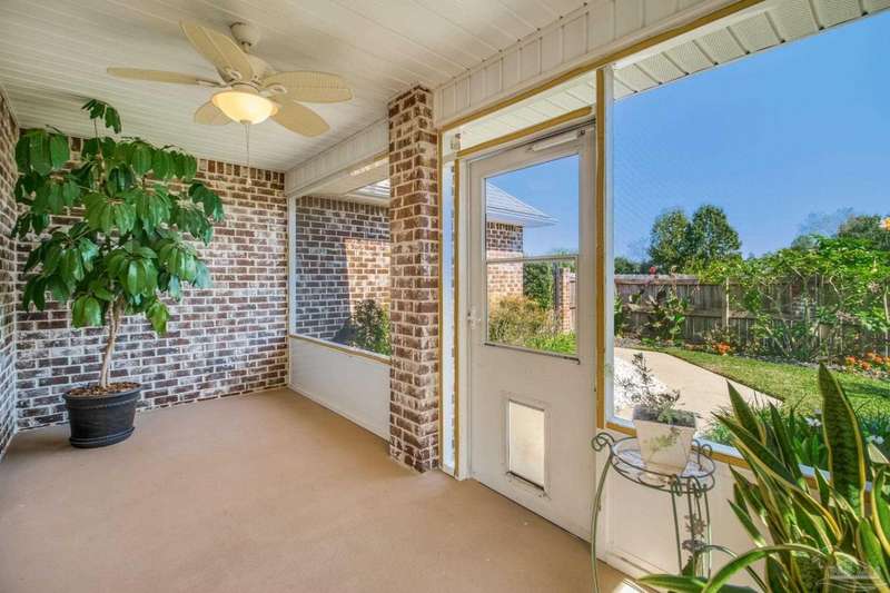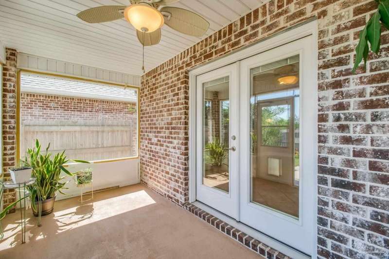 Prepare to be delighted by this amazing, low-maintenance brick patio home. The curb appeal is sure to impress, featuring a welcoming front entry with sidewalks connecting throughout the community. You can also enjoy private access through the back, where the two-car garage and fenced yard offer an inviting alternative entry, the hallmark of a true patio home. Step into the backyard retreat, fully privacy-fenced and landscaped, perfect for relaxing or entertaining. From the screened-in porch with French doors, you'll enter a spacious living room with high ceilings and an open layout that flows into the kitchen and dining area. The kitchen features dark wood cabinetry, granite countertops, a raised bar, stainless steel appliances, and an oversized pantry, all complemented by tile flooring. Off the kitchen, you'll find a convenient laundry room that leads directly to the two-car garage, ideal for storage or keeping your holiday d���©cor organized. The primary suite offers carpeting, a large walk-in closet, and an ensuite bathroom with a double vanity, laminate countertops, a relaxing soaking tub, and a separate walk-in shower. There's also a flexible office space near the front of the home, perfect for remote work or hobbies. The two additional bedrooms are generously sized and share a full bathroom featuring a single vanity, laminate countertop, and a tub/shower combination. This home has been lovingly cared for and is move-in ready, the perfect place for new owners to plant their roots and call home.