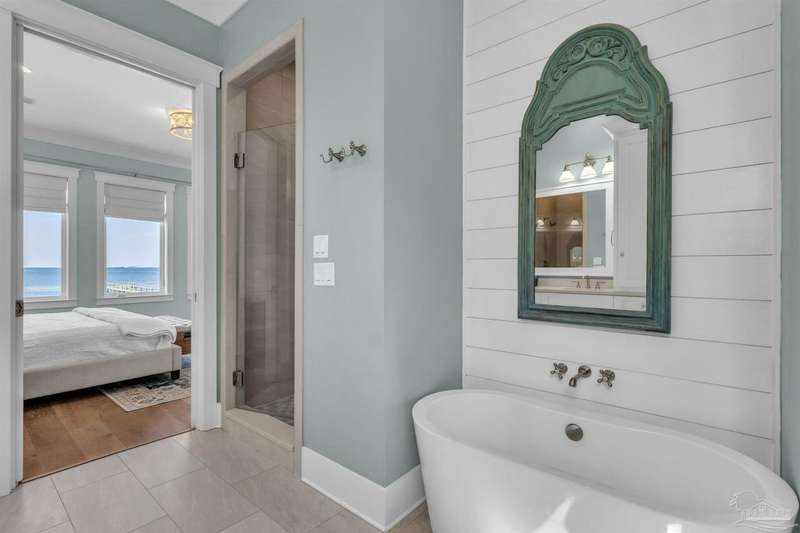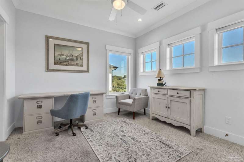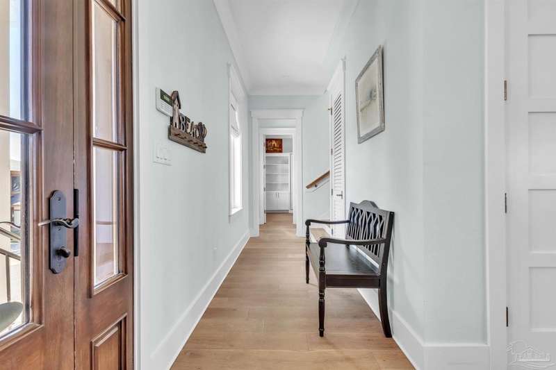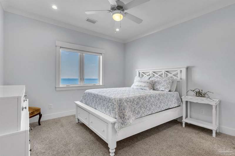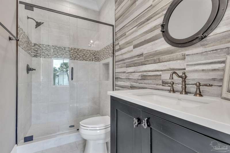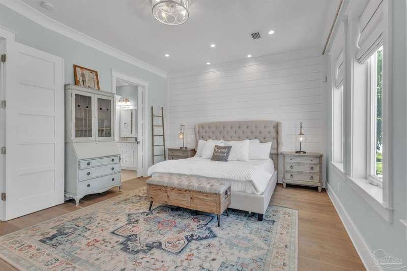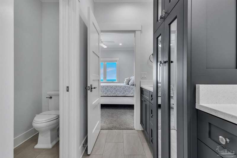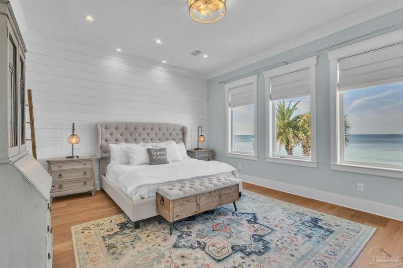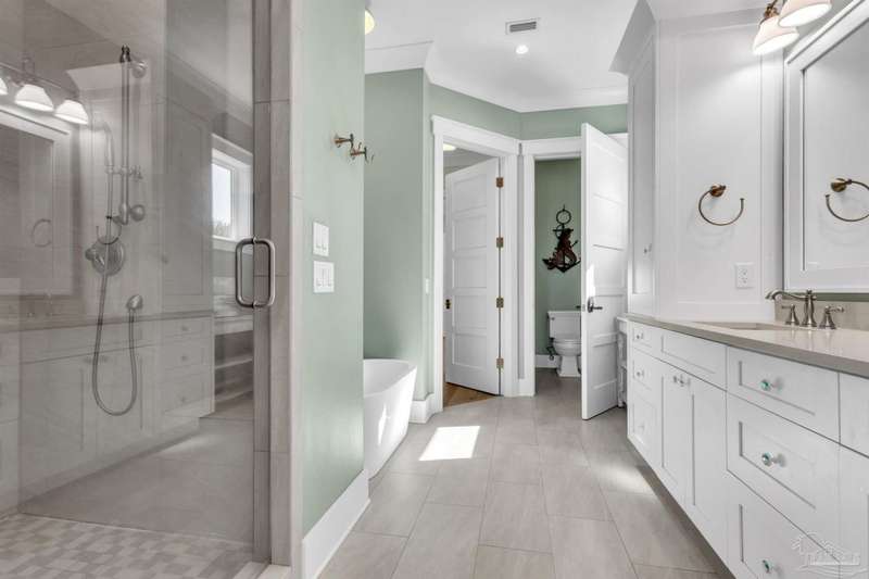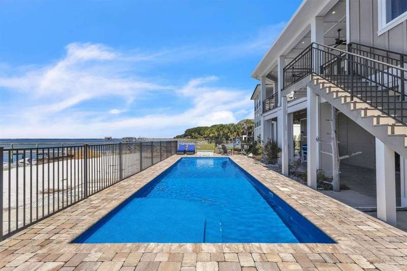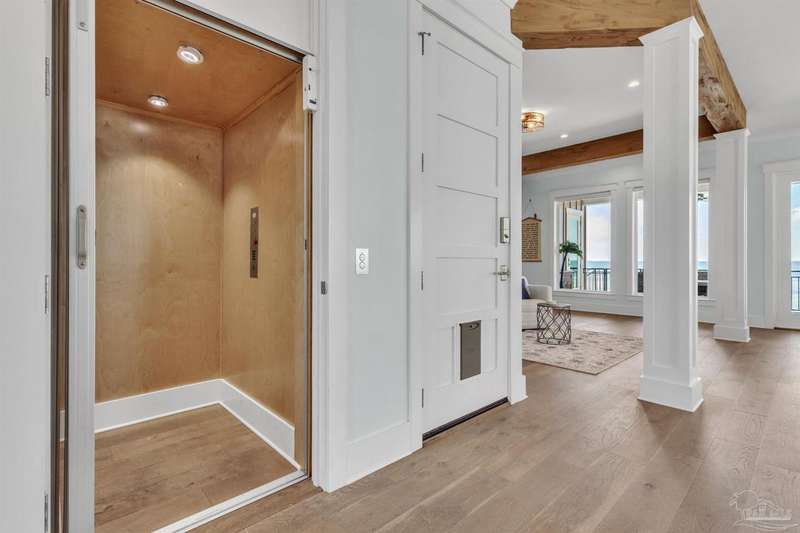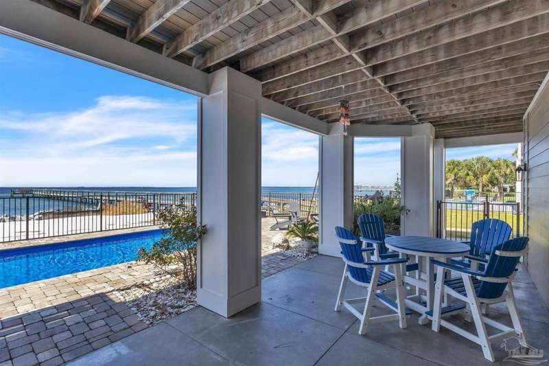 Welcome to a rare opportunity in the private, gated community of Deer Point Village. Perfectly positioned in Gulf Breeze Proper, this home places you just minutes from all the conveniences locals treasure from top-rated schools and shopping to the world-famous white sands of Pensacola Beach. Living here means enjoying the charm of a close-knit community while never sacrificing comfort or accessibility. From your covered deck, you'll have front-row seats to the Intracoastal Waterway and even the beloved Blue Angels as they soar above. The backyard is nothing short of a retreat, complete with a heated saltwater pool, a private man-made beach, and community dock truly make this a dream setting for both fishing enthusiasts and those who simply love the water. The home itself was designed with both elegance and livability in mind. A grand foyer opens to a bright, open-concept living space where floor-to-ceiling windows and high ceilings capture the water views and fill the home with natural light. The gourmet kitchen is as functional as it is beautiful, offering double wall ovens, granite countertops, an oversized island, multiple refrigerator and freezer units, and a spacious pantry ideal for both everyday living and entertaining. On the main level, the Primary Suite serves as a true retreat with private deck access, a tiled walk-in shower, stand-alone soaking tub, extended double vanities, and a large walk-in closet thoughtfully designed by Alpha Closets. Upstairs, three additional bedrooms provide flexibility for family or guests, including one with an en-suite bath and two joined by a Jack-and-Jill. Practicality meets innovation throughout this residence, a full-service elevator, geothermal heating and cooling, and abundant storage integrated seamlessly into the design Every feature reflects a commitment to quality and comfort, creating a waterfront lifestyle that is both refined and relaxed.This is more than just a home, experience the best of Gulf Breeze living!