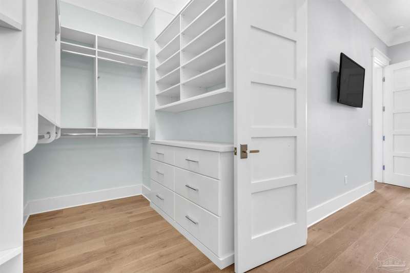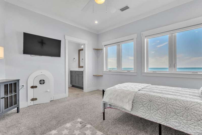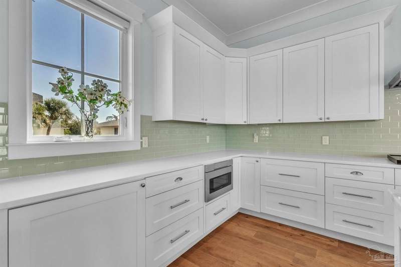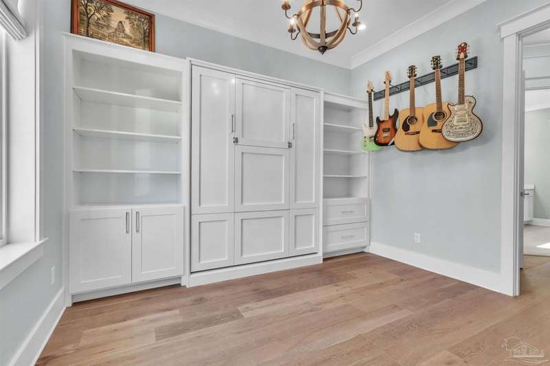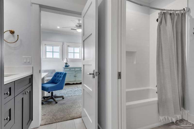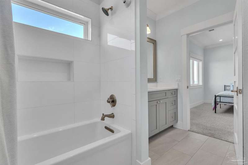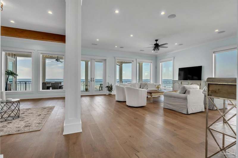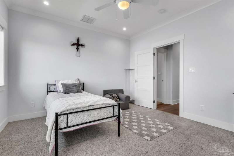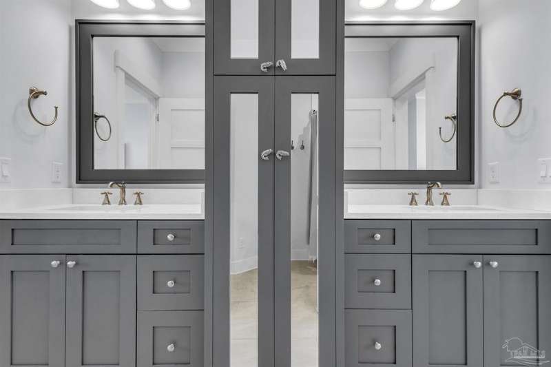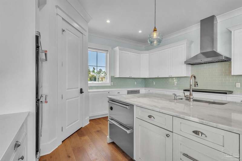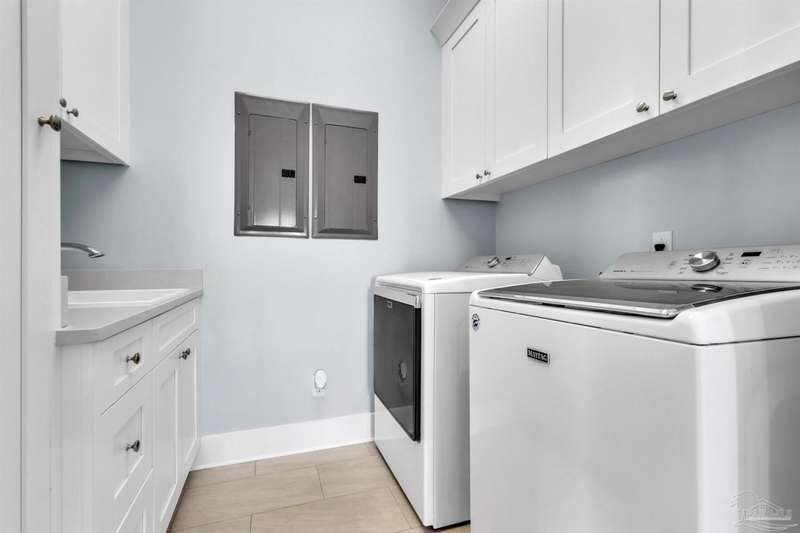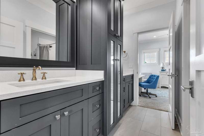 Welcome to a rare opportunity in the private, gated community of Deer Point Village. Perfectly positioned in Gulf Breeze Proper, this home places you just minutes from all the conveniences locals treasure from top-rated schools and shopping to the world-famous white sands of Pensacola Beach. Living here means enjoying the charm of a close-knit community while never sacrificing comfort or accessibility. From your covered deck, you'll have front-row seats to the Intracoastal Waterway and even the beloved Blue Angels as they soar above. The backyard is nothing short of a retreat, complete with a heated saltwater pool, a private man-made beach, and community dock truly make this a dream setting for both fishing enthusiasts and those who simply love the water. The home itself was designed with both elegance and livability in mind. A grand foyer opens to a bright, open-concept living space where floor-to-ceiling windows and high ceilings capture the water views and fill the home with natural light. The gourmet kitchen is as functional as it is beautiful, offering double wall ovens, granite countertops, an oversized island, multiple refrigerator and freezer units, and a spacious pantry ideal for both everyday living and entertaining. On the main level, the Primary Suite serves as a true retreat with private deck access, a tiled walk-in shower, stand-alone soaking tub, extended double vanities, and a large walk-in closet thoughtfully designed by Alpha Closets. Upstairs, three additional bedrooms provide flexibility for family or guests, including one with an en-suite bath and two joined by a Jack-and-Jill. Practicality meets innovation throughout this residence, a full-service elevator, geothermal heating and cooling, and abundant storage integrated seamlessly into the design Every feature reflects a commitment to quality and comfort, creating a waterfront lifestyle that is both refined and relaxed.This is more than just a home, experience the best of Gulf Breeze living!