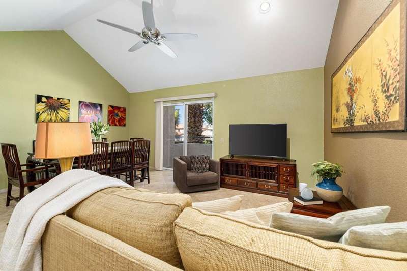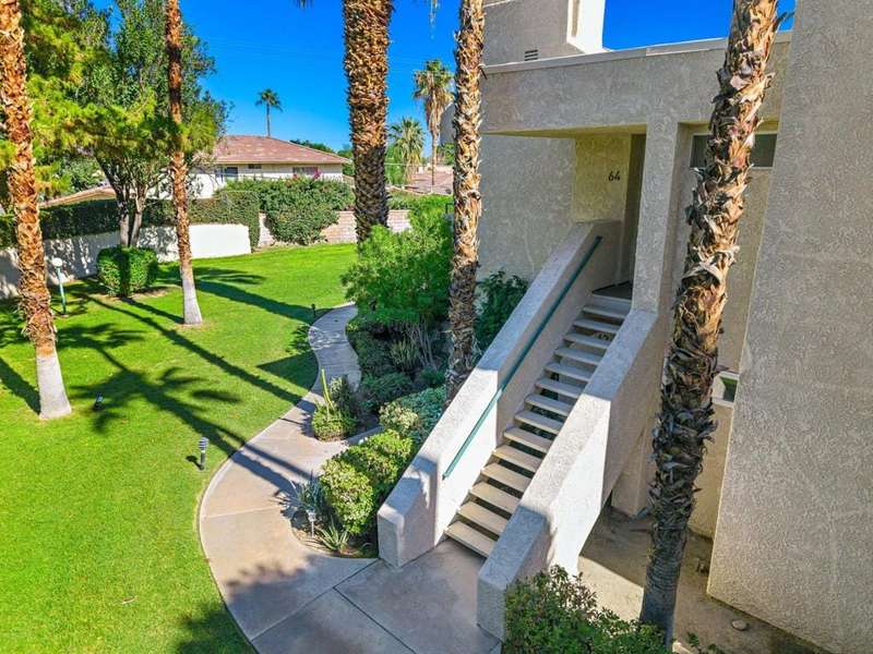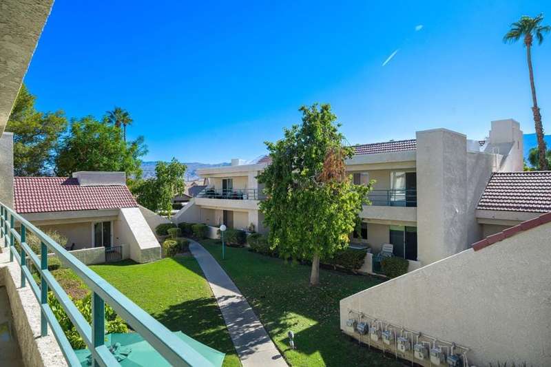 Welcome to Candlewood Villas I, a beautifully maintained community in the heart of Cathedral City. This stunning 2-bedroom, 2-bathroom end-unit condominium offers the perfect combination of comfort, style, and location. Situated on fee land (you own the land), this upper-level unit features vaulted ceilings designed to maximize natural light and showcase the spectacular mountain views. Enjoy the luxury of two spacious outdoor balconies--ideal for morning coffee or evening relaxation offering breathtaking vistas of the surrounding mountains. The updated kitchen boasts modern finishes and flows seamlessly into the living and dining areas, perfect for entertaining or quiet evenings at home. Tucked away in a prime location within the community, this end unit offers enhanced privacy and quiet. Candlewood Villas I residents enjoy access to two sparkling pools and spas, as well as well-maintained tennis courts for recreation. With proximity to shopping, dining, golf courses, and Palm Springs, this home is an exceptional opportunity for full-time living, a vacation getaway, or a smart investment. Don't miss your chance to own a piece of desert paradise!