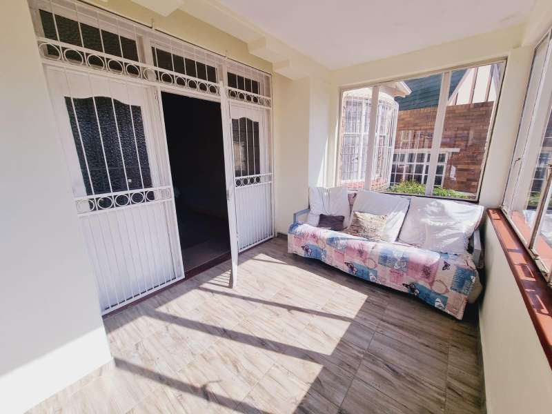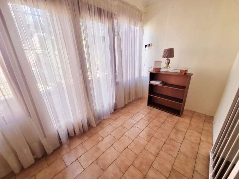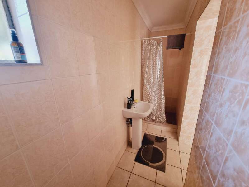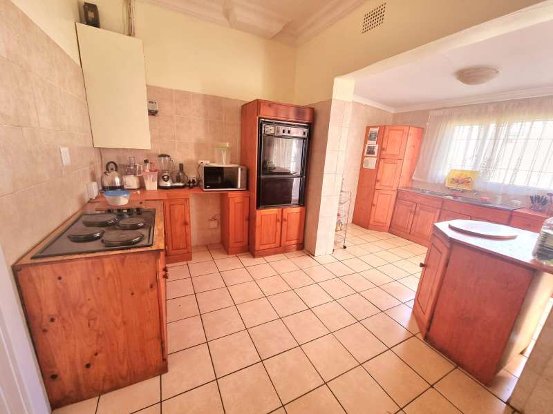 VERY NEAT HOME PLUS A LARGE COTTAGE This lovely home consists of three spacious bedrooms with cupboards Two bathrooms with shower, bath, basin & loo Beautiful cherry wood kitchen with breakfast nook, plenty cupboards for all your storage, hob, eye-level oven ,space for appliances. Enclosed patio leading into a spacious lounge and separate dining room Beautiful wooden flooring throughout living areas and bedrooms. COTTAGE One bedroom with cupboards One bathroom with shower, bath, basin & loo Open plan kitchen with loads of cupboards and space for appliances Open plan lounge and dining room One single garage Security gate and fence