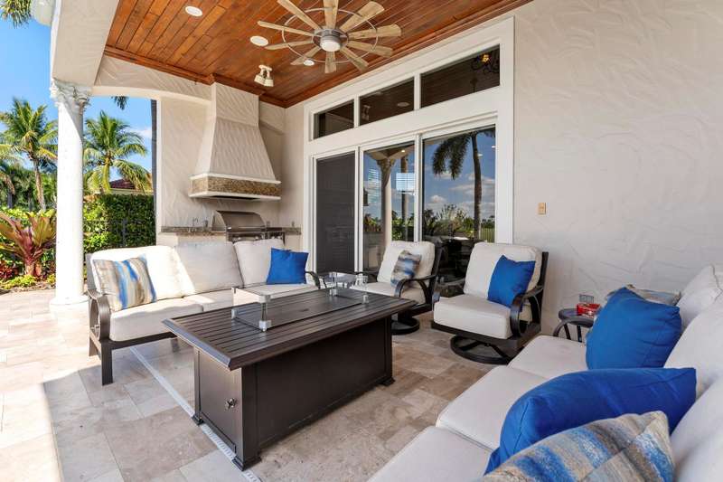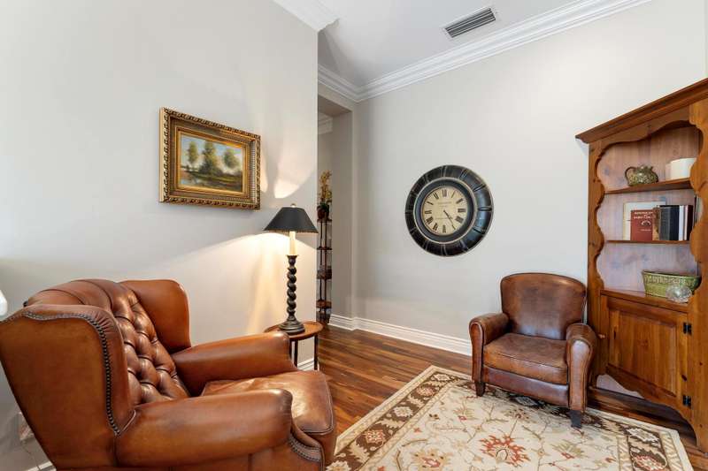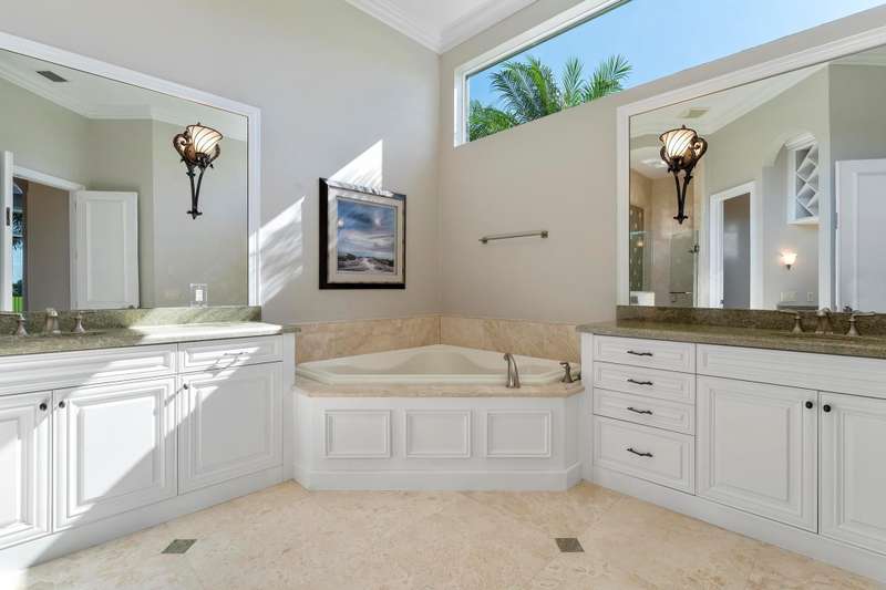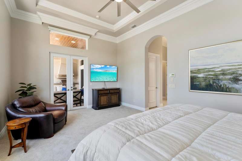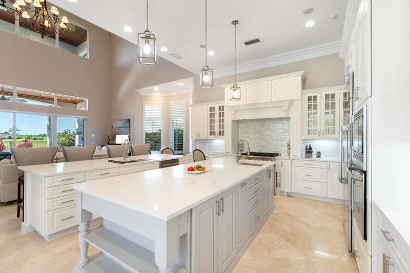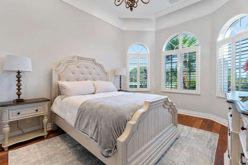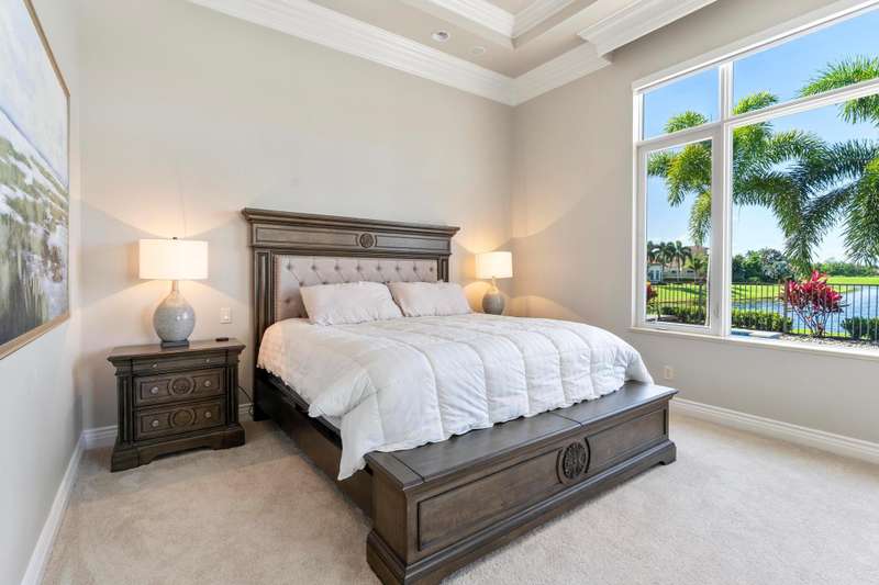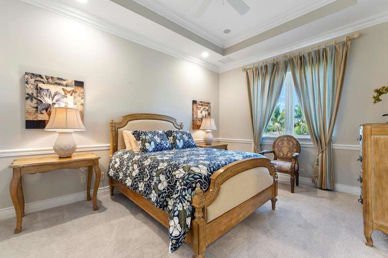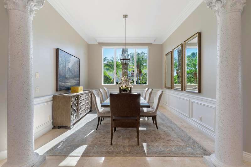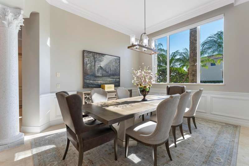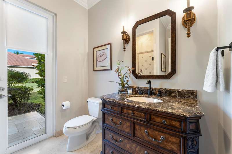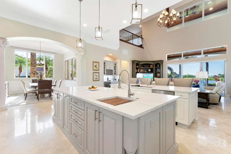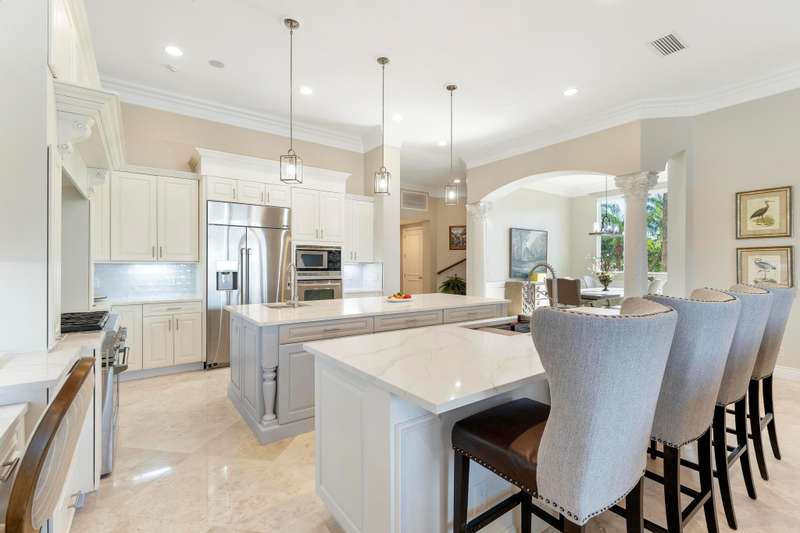 This exceptional three-bedroom residence, which includes a den and four bathrooms, is situated within the esteemed Tesoro Country Club. The layout incorporates an open floor plan that effectively showcases a newly renovated contemporary kitchen featuring a double island, substantial ceilings, and captivating views accessible from the primary living areas, balcony, and patio. The master bedroom is located on the first floor and includes a pre-installed elevator shaft, facilitating the potential installation of an elevator. Each bedroom is equipped with its own private ensuite bathroom, while the upper-level living space provides ample room for gatherings, enhanced by a sophisticated custom bar. The exterior of the property is equally impressive, featuring an oversized renovated pool and a