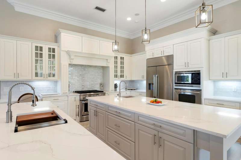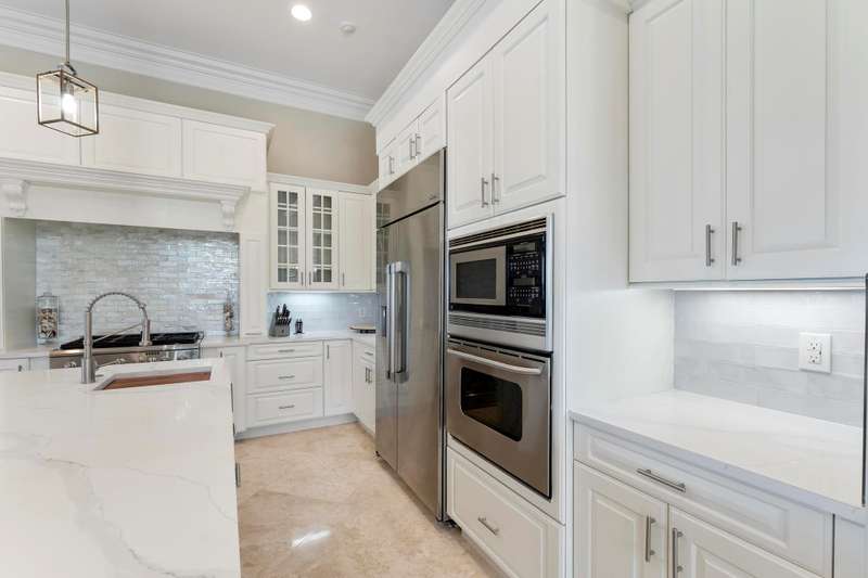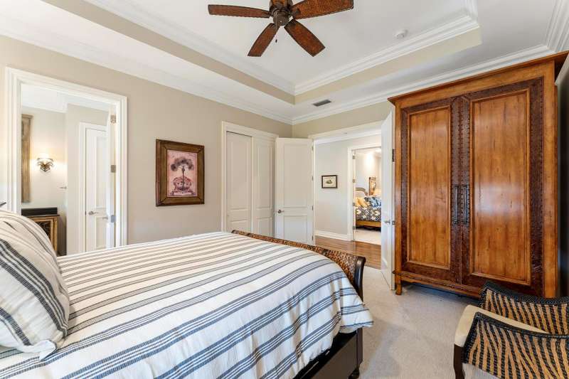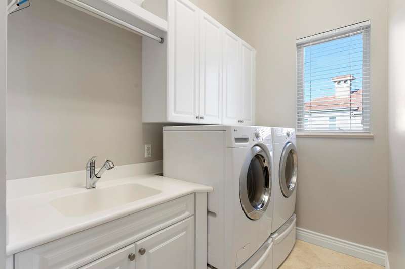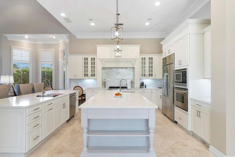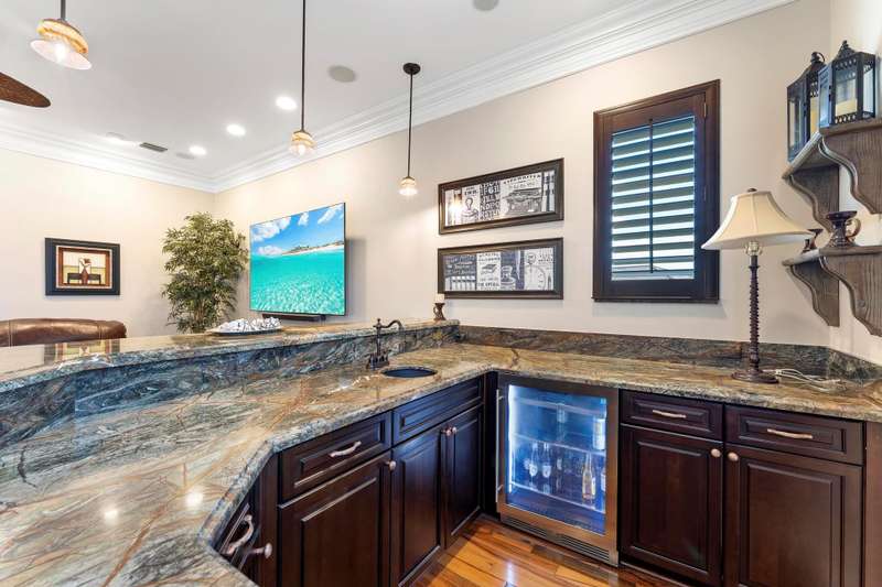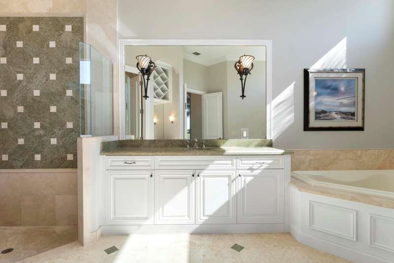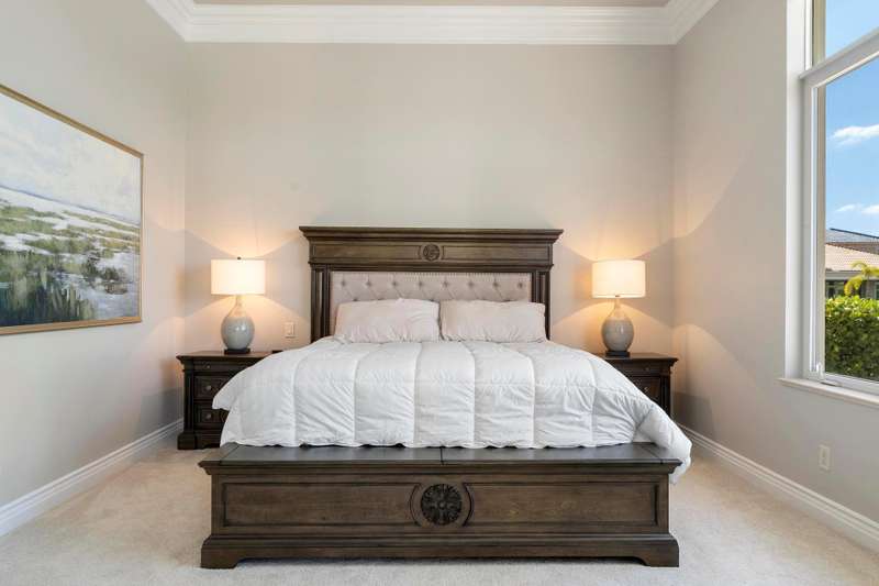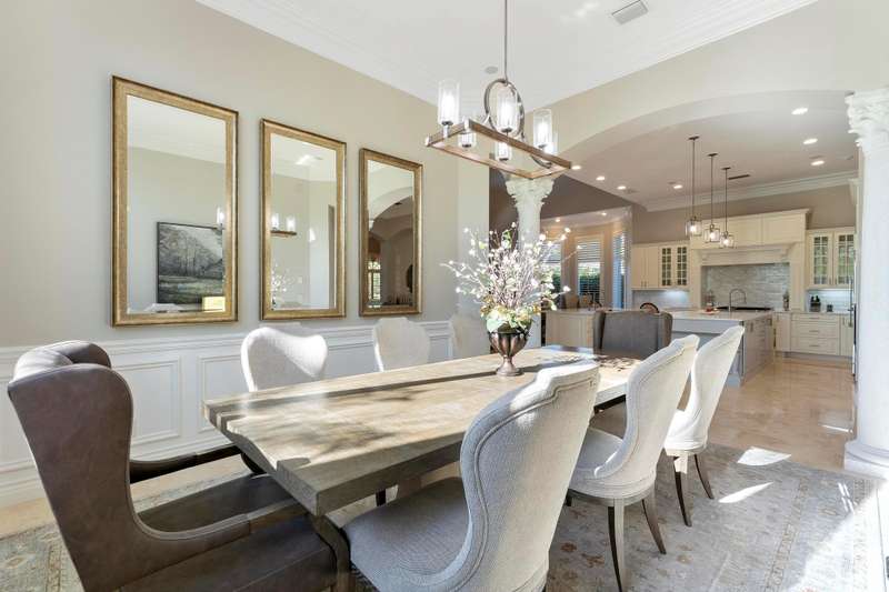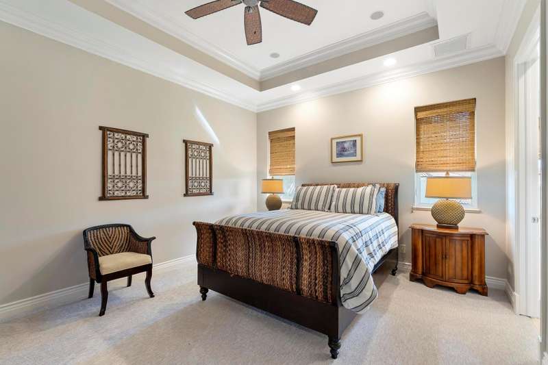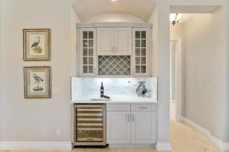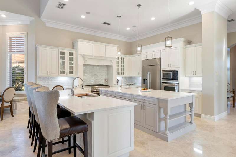 This exceptional three-bedroom residence, which includes a den and four bathrooms, is situated within the esteemed Tesoro Country Club. The layout incorporates an open floor plan that effectively showcases a newly renovated contemporary kitchen featuring a double island, substantial ceilings, and captivating views accessible from the primary living areas, balcony, and patio. The master bedroom is located on the first floor and includes a pre-installed elevator shaft, facilitating the potential installation of an elevator. Each bedroom is equipped with its own private ensuite bathroom, while the upper-level living space provides ample room for gatherings, enhanced by a sophisticated custom bar. The exterior of the property is equally impressive, featuring an oversized renovated pool and a