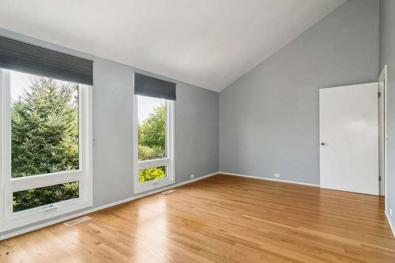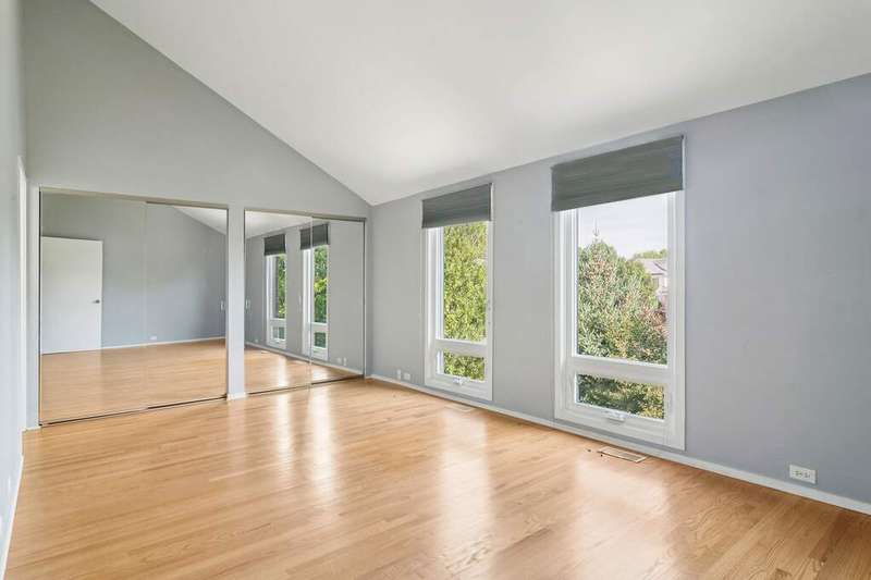 Move right into this beautiful Triumvera townhome! Enjoy expansive living in this oversized 3 bedroom, 2.1 bath multi-level townhouse. Hardwood floors run throughout the living room, dining room, family room, and bedrooms. The updated kitchen features maple cabinets, granite countertops, and stainless steel appliances, with access to the large wood deck from both the kitchen and dining room. The spacious primary suite offers vaulted ceilings and dual reach-in closets. All bathrooms have newer vanities. Triumvera is a fantastic community with an indoor pool, clubhouse, recreation/gathering area, and low HOA fees. Excellent District 34 & 225 schools, plus so close to restaurants and endless shopping. Space, location, and amenities-Welcome Home!