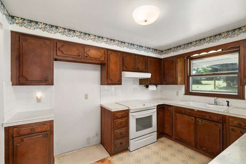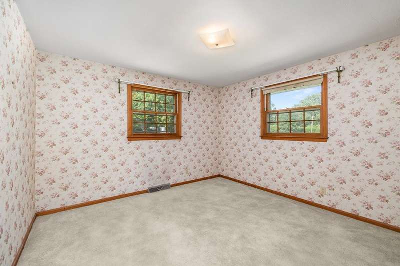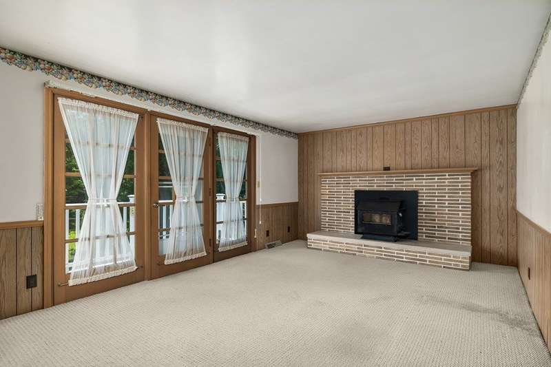 One owner lovingly cared for 3 bedroom brick ranch with lake views. Formal living room, family room with wood-burning stove, eat-in kitchen, and full bath on main floor. Lots of closet space throughout. Huge rec room with tiled floor, wood-burning fireplace, full bath, laundry area, and workshop in the walk-out lower level. 2 car garage. New roof in 2022. Fresh landscaping in 2024. Sold "AS IS".