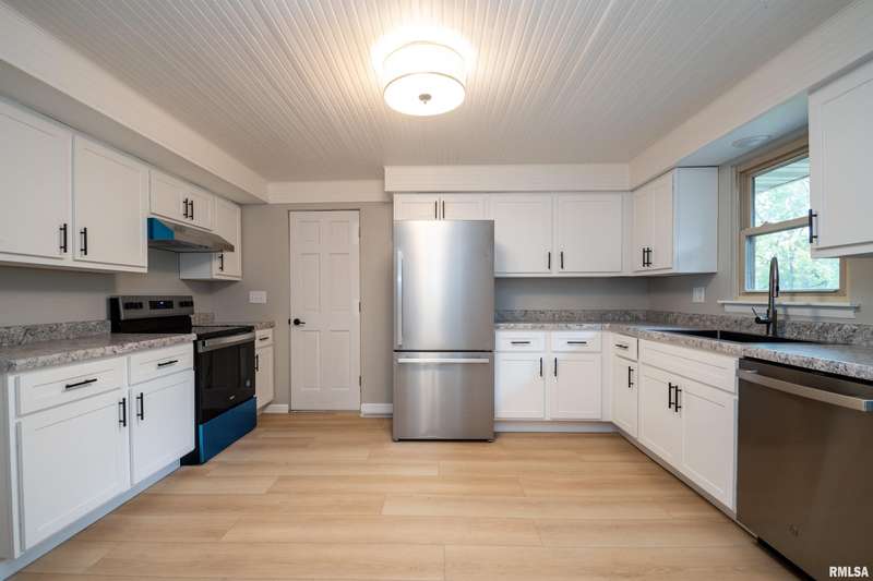 Recently updated throughout, this 3-bedroom, 2-bathroom home features fresh neutral colors, new flooring and carpeting, updated cabinetry and countertops, stylish bathroom vanities, modern lighting fixtures, ceiling fans, and more. The spacious basement offers a large family room and convenient walk-out access to the backyard. The primary bedroom includes sliding glass doors leading to a private deck—perfect for relaxing outdoors. Enjoy an oversized attached garage plus an additional rear-entry garage, ideal for extra storage or a workshop. The fenced-in yard provides a private outdoor space, and the convenient location is close to shopping, schools, and other local amenities.