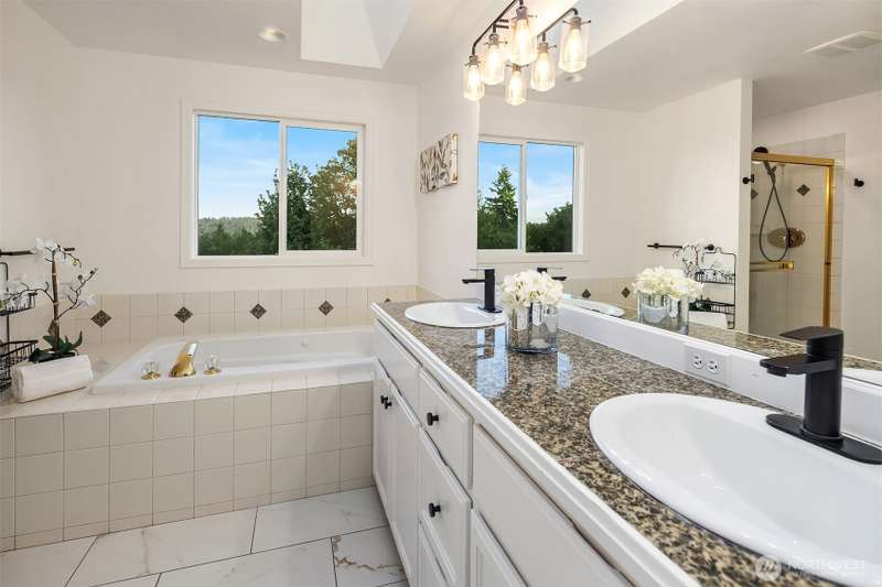 THIS IS THE ONE ~ Gorgeous, move-in ready Burnstead home with a great nearly 4,000 SF floor plan—soaring ceilings + abundant natural sunlight, big, updated chef’s kitchen w/pantry + newer apps, FR + deck, LR/DR, grand entry; 4 BR incl spacious primary/2 BA/den (or BR) on upper; high ceiling daylight basement w/5th BR guest suite (MIL, ADU?), 2nd fam rm + 2nd den. Parklike shy 1/2 acre lot backing to protected greenspace sited on a play-safe cul de sac. Ideal location—just a few minutes to I-405, upscale Village at Totem Lk w/its upscale shops and eateries, and Woodinville Wine Country. Storage aplenty w/3 car garage and an 600 SF storage. And—Cascade views, central AC, award winning Northshore schools, clean pre-inspectio, brand new roof.