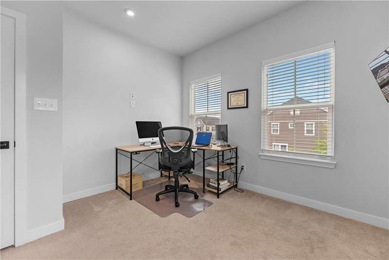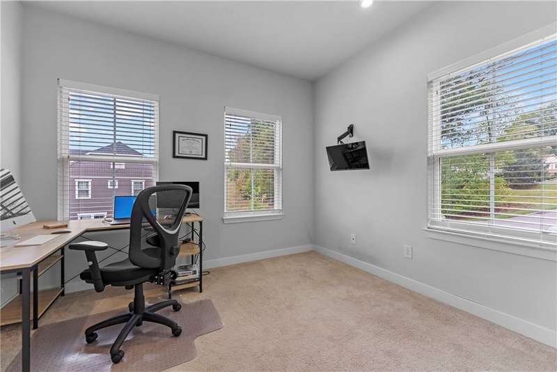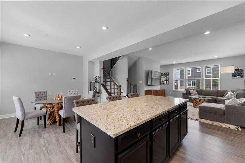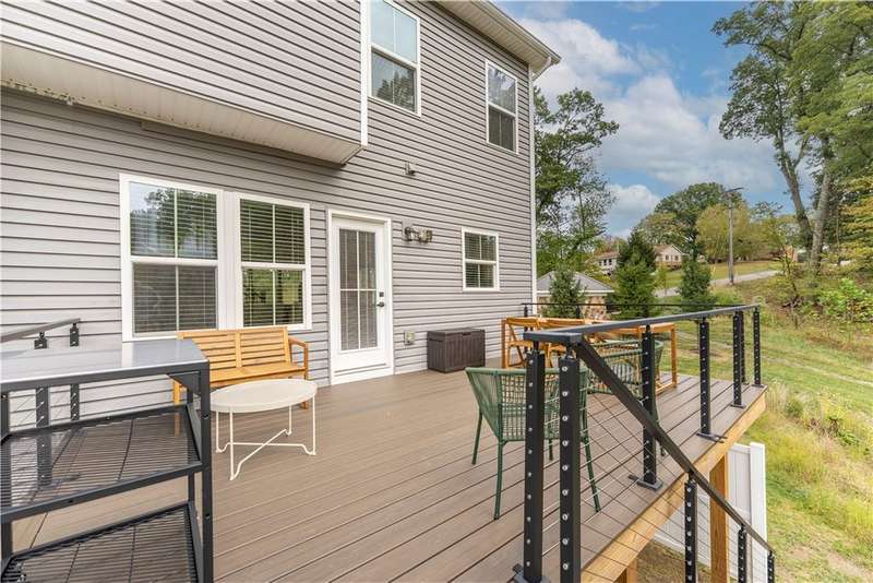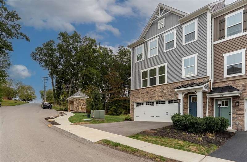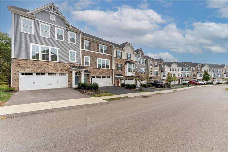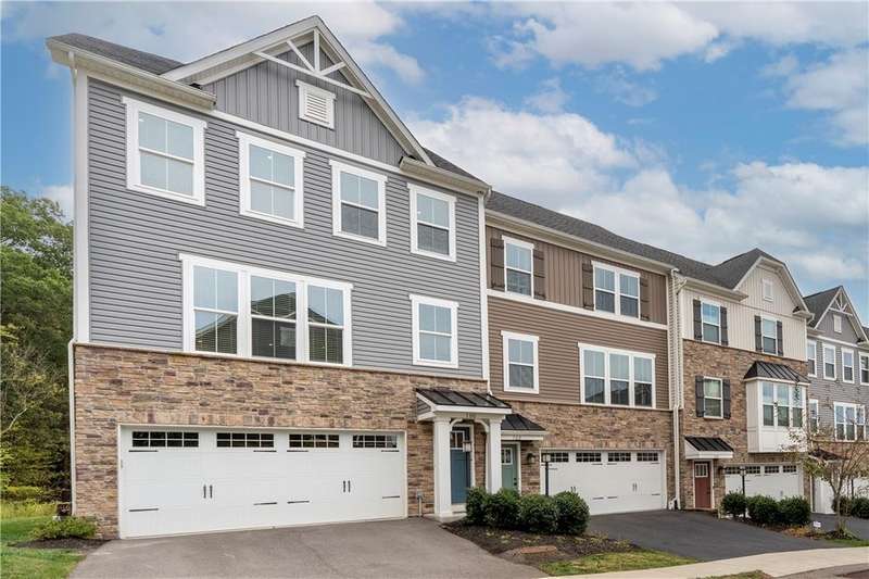 Move in ready and low maintenance to this beautiful townhome. The open -concept main level is perfect for modern living,featuring a bright living room ,dining area and a stylish kitchen with stainless steel appliances and granite countertops. Oversized center island in the kitchen perfect for family and guests to gather. Newly built deck off of kitchen with 'trex' like material ideal for grilling. Beautiful view of the fields behind the home. Upstairs the primary suite includes a walk in closet and private bath with two additional bedrooms and full bath. Second floor laundry with ample storage. Lower level is a finished family room and or office. Walk out to what could be covered storage or patio under deck. Two car integral garage. Bonus end unit for privacy. Close to I79 and shopping and restaurants. This community features trails that connect to Mayer Park. HOA Fee covers snow removal,landscaping,sewage and water
