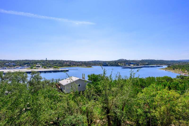 Panoramic Views and Lake Access!!! In addition to soaring, panoramic views of Lake Travis and the Hill Country, this 3-bedroom, 2-bath condo offers direct enjoyment of the lake itself. A private easement just steps away allows you to paddleboard, fish, or boat with ease, while nearby Lakeway City Park provides trails for hiking, picnic areas, and pet-friendly amenities--rounding out an active, outdoor lifestyle. Perched on the upper level, the home showcases vaulted ceilings and walls of windows that flood the space with natural light. Recently installed wide-plank luxury vinyl flooring flows throughout the home--durable, stylish, and completely carpet-free--while fresh interior paint enhances the crisp, modern feel. The kitchen boasts granite countertops and stainless appliances, and the open living space is anchored by a wood-burning fireplace. Bathrooms are refreshed with cabinetry painted in cool, lake-inspired tones, echoing the views outside. The primary suite includes dual vanities and a walk-in closet, and each bedroom offers flexibility for guests or work-from-home needs. Step onto the covered balcony to enjoy breathtaking sunsets, fresh breezes, and a retreat-like setting. With exemplary Lake Travis ISD schools, a LOW tax rate, HOA coverage, and a tucked-away niche location in the back of Lakeway, this condo offers a tranquil, resort-like atmosphere where every day feels like vacation. Best of all, the easement to Lake Travis and nearby Lakeway City Park ensure that water recreation and outdoor adventures are always just steps from your door.