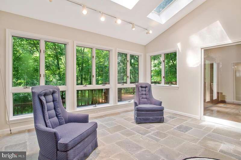 If you're like a lot of people, you have probably dreamed of living at the ""Top of a Mountain.' Well, dream no more! This is your opportunity to live at the ""top of a mountain""�, while being a stone's throw away from everything. ""Fair Winds""� is now available to have your dream come true. This 7 acre lot has some of the most pristine views in beautiful Marriottsville! The house was lovingly custom built by the current owner. She left no details out. Featuring a passive solar system, reducing utility costs. The house faces south, Closed double entry doors on all north facing entrances. The year-round sunroom has 10 inches of concrete under the slate floor, and a stone wall, tempering the outside conditions. Celestory windows and a dramatic open floorplan also help with air flow. And to round out the home's ventilation ingenuity, there's a two zone HVAC system. So, you can see the thought that went into the ventilation alone. Large eat-in kitchen was recently updated, appliances less than 10 years old . Whole house interior was recently painted. Newer roof. Two en-suites on separate floors allow for flexibility. Upstairs en-site has sliders leading to a tiled patio. Large finished walkout basement with full bath, kitchen, storage, and workshop and lots of light, with a slider leading to the back yard. Oversized garage also has workshop area. There are full baths on each floor(4 altogether) plus a ½ bath in mud room. Two decks and a screened porch help to extend the comfort and beauty of indoors to the outdoors seamlessly. A $6000 credit will be given at settlement to replace family room door. Patapsco State Park is very nearby, with lots of outdoor activities. This home was designed for maximum efficiency, and total comfort and beauty, both inside and out. But you really need to go see it in person to fully appreciate it , get it before its gone!