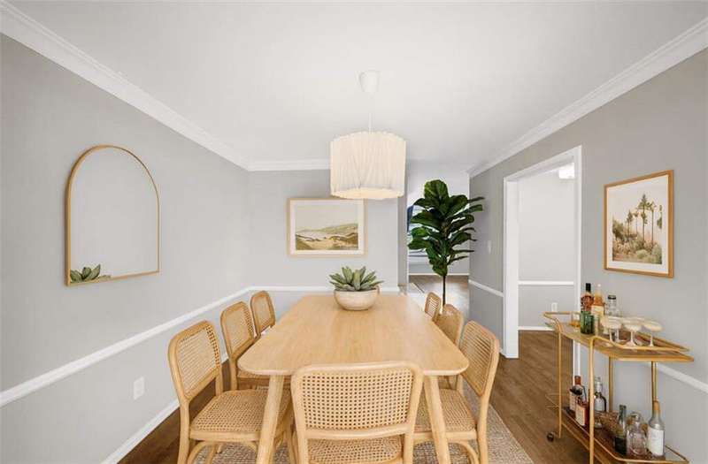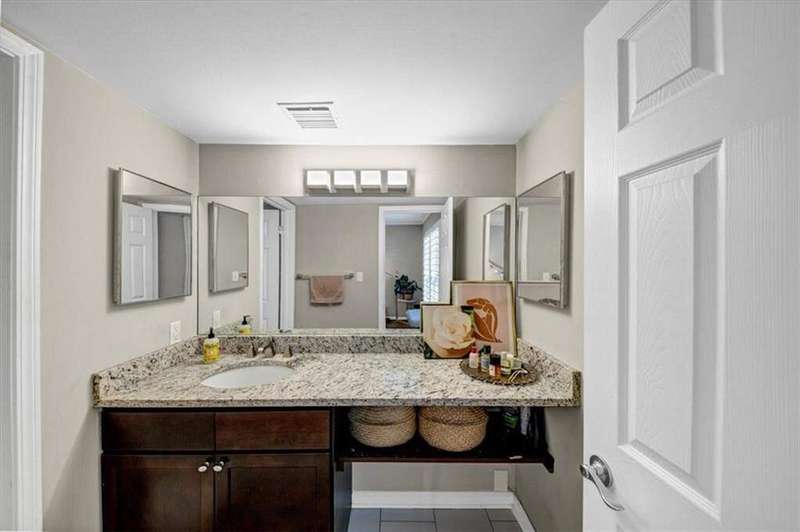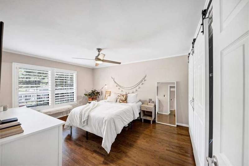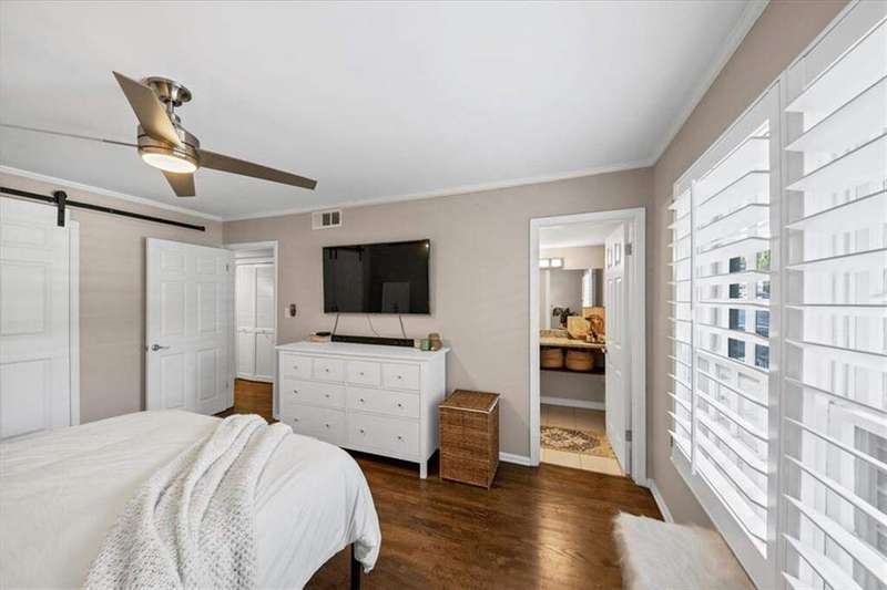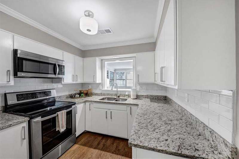 Renovated Flat in Gated Buckhead Neighborhood! This beautifully updated two-bedroom, two-bath flat combines charm and modern convenience. Inside, you'll find real hardwood floors, crown molding, and four-inch plantation shutters throughout. The spacious living room features a fireplace, ceiling fans, and barn door closets for a touch of character. Both bathrooms have been renovated with new tile, frameless glass shower doors, upgraded lighting, and raised vanities with granite counters. The kitchen is a chef's delight, offering granite countertops, white cabinetry, subway tile backsplash, an LG appliance suite and a pass-through to the sunroom. All appliances remain, including the LG refrigerator, range, microwave, and dishwasher, washer/dryer combo unit. The sunroom is the perfect spot to relax with a serene, wooded view. LaRue sports its own pool and clubhouse just steps away. Beyond that, Cross Creek is a gated community offering resort-style amenities inluding: an18-hole par-3 golf course with pro shop, 3 swimming pools, 4 tennis courts plus pickleball, Gym (for an optional membership $35/month,) On-site restaurant & bar, scenic, walkable roads throughout the property. Cross Creek is ideally located in the heart of Buckhead, minutes from the Buckhead Business District, Midtown and Downtown. Just 15 minutes to the airport with easy access to I-75, I-85, and GA 400. Zoned for top-rated Morris-Brandon Elementary School. Monthly HOA includes: water, sewer & trash, roof, landscaping, building maintenance, 24-hr guard gate attendant, pools & tennis. Golf is $10/round for residents.
