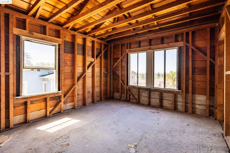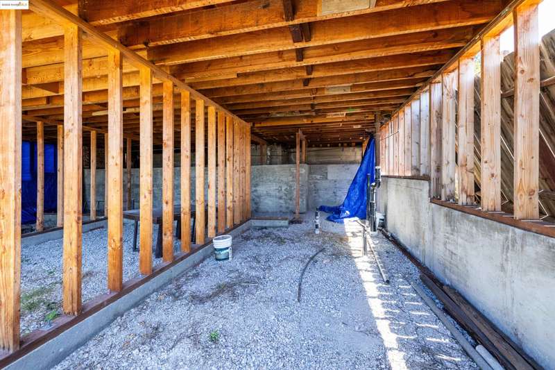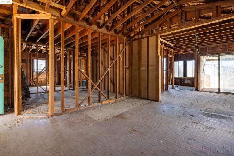 CONTRACTOR SPECIAL – Eastmont Hills Fixer with Sweeping Water Views Gutted to the studs and ready for transformation. This 9,200± sq ft lot offers distant water views of the Bay and a solid jumpstart on redevelopment. Significant foundation and roof work already completed, including prep for a basement-level secondary unit. Previously approved permits were in place—buyer to verify status with the City of Oakland and explore reactivation or continuation. Much of the upfront work is done—ideal for an experienced investor or builder ready to take the project across the finish line. Excellent potential in a neighborhood known for its charming Normandy-style homes built in the 1930s.