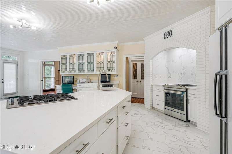 Luxury Estate on a Private 1-Acre Treed Lot with Custom 5-Tiered Deck.Seller will pay up to $10,000 max concessions towards buyers closing costs at closing.Step into timeless elegance and modern luxury in this exquisitely renovated estate nestled on a beautifully landscaped 1-acre lot. Boasting 5 spacious bedrooms, 5.5 baths, and over-the-top amenities throughout, this home is designed for comfort, entertaining, and refined living.Interior Features:Light-Filled Living Spaces: Abundant windows with transoms frame serene views of the wooded grounds, bringing natural light into every corner.Expansive Great Room: Beamed ceilings, gas fireplace, custom built-ins, and open sightlines to the gourmet kitchen.Chef's Dream Kitchen: Featuring beadboard ceilings, Quartz countertops, gas burner JennAir cooktop + electric stove/oven, walk-in pantry, custom cabinetry, double sinks, 2 cooking zones, built-in desk, and walls of windows. Opens to a cozy hearth room.Formal Dining Room: Elegant touches include a butler's pantry, French doors, custom chandelier base, and stained-glass accents.Private Office/Study: Complete with Chandelier, built-in bookcases and custom millwork.Bedroom Suites:Downstairs Primary Suite: A luxurious retreat with raised gas fireplace encased in marble tile, five closets, jacuzzi tub, walk-in shower, bidet, dual vanities, stained-glass window, wall of mirrors, chandelier, and pocket doors.Second Downstairs Bedroom: Includes its own private ensuite bath?perfect for guests or multi-generational living.Upstairs Bedrooms: Two large bedrooms with ensuite baths plus a second primary suite upstairs with built-ins and full bath.Bonus Spaces:Grand Ballroom: Featuring a mirrored wall, ballet bar, and wet bar?ideal for dancing, yoga, or entertaining.Additional Bonus Room: With two oversized walk-in closets?perfect for a playroom, media room, or home gym.Five Attics: Offering incredible storage. One attic is ready to be transformed into a sauna or wellness space.Additional Highlights:23 Closets throughout the home provide unmatched storage.Huge Laundry Room: Includes sink, extra pantry, and storage closets.Elegant Finishes: White porcelain tile, hardwood floors, extensive crown molding, baseboards, modern light fixtures, and abundant electrical outlets.Security & Efficiency: Features 5 security cameras, Ring doorbell, glass breakers, and energy-efficient insulation on exterior walls.Extensive Outdoor Living:5-tier wood deck with treetop viewsCovered outdoor relaxation room with hot tub (as is condition)Glassed-in mini sunroom gazebo?perfect for reading or quiet timeCircular driveway with parking for 5+ cars, plus oversized 2-car garageBasement/storm shelter for added safetyCommunity Perks:Located in a peaceful and prestigious neighborhood with access to a private lake.This rare, one-of-a-kind home offers the perfect blend of luxury, functionality, and character. Whether you're hosting a gala in the ballroom or sipping coffee in the gazebo, y
