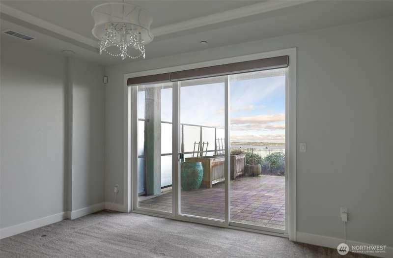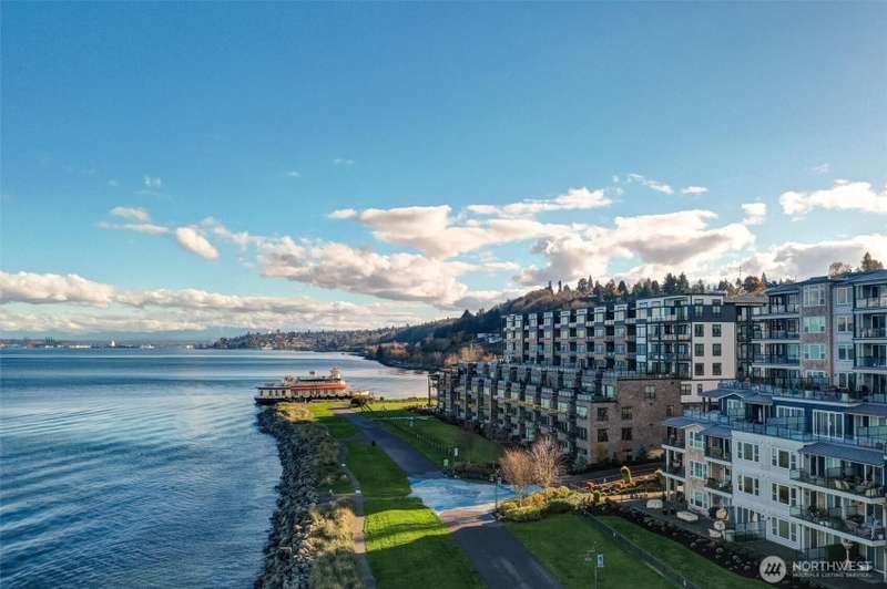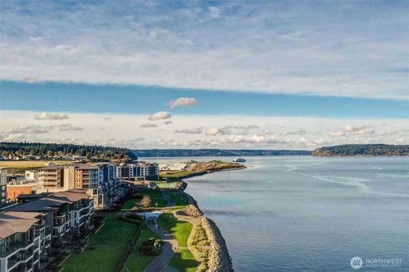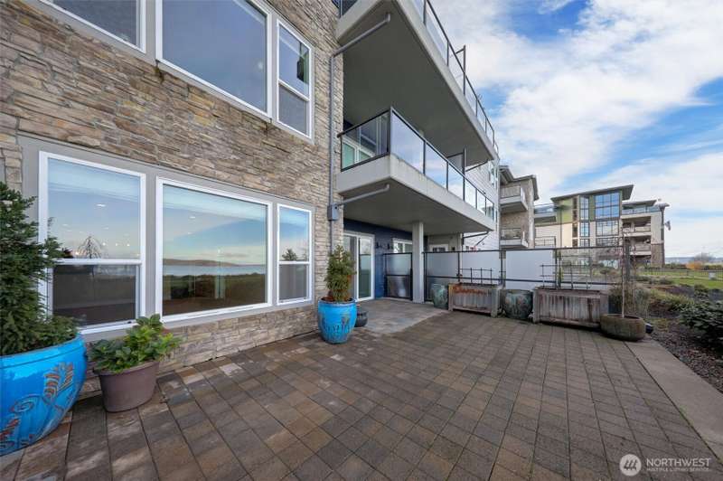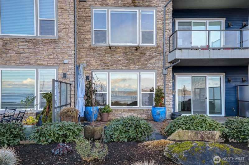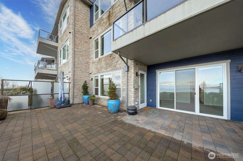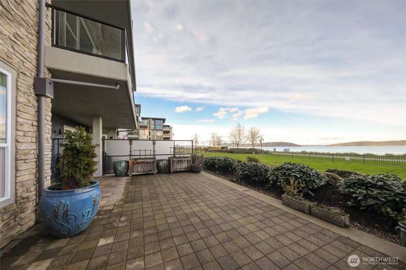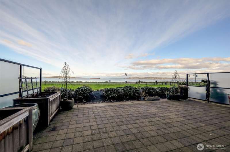 Indulge in sweeping Puget Sound views from your oversized patio, built for relaxed entertaining. This Point Ruston condo offers easy living in the Baker Building, featuring a spacious great room, crown molding, plush carpet, & a cozy fireplace. Large windows & a slider open to the patio & invite the outdoors in. The kitchen has quartz counters, bar height seating, Bosch SS appliances & new fridge. The primary suite includes a slider to the patio, sound views, heated floors, spa-style bath, tiled shower, dual sinks, & custom closet. A flexible guest room, full laundry room w/W/D, sink, & storage complete this home near waterfront trails, parks, shops, & dining. 2 side by side parking spaces. Enjoy living every day as if it were a vacation!