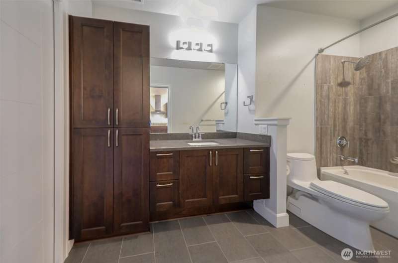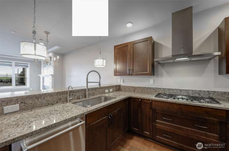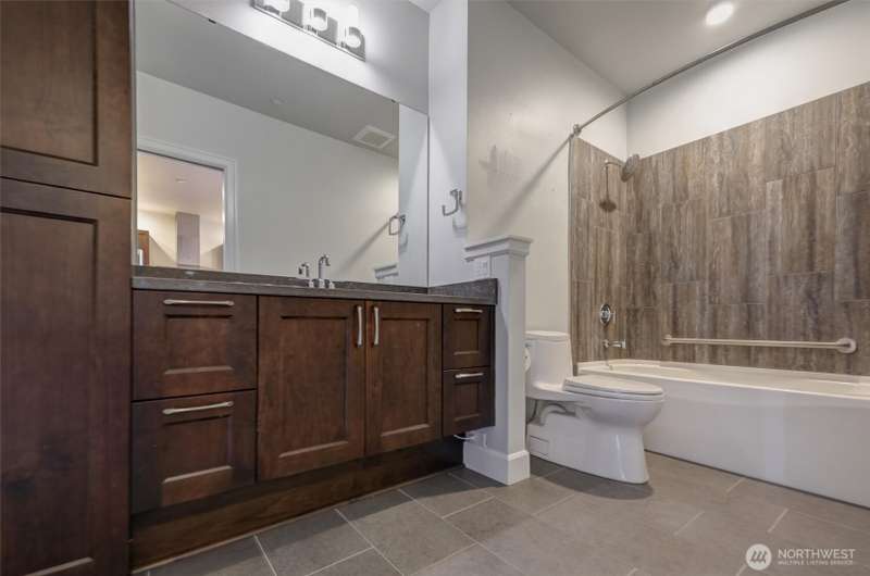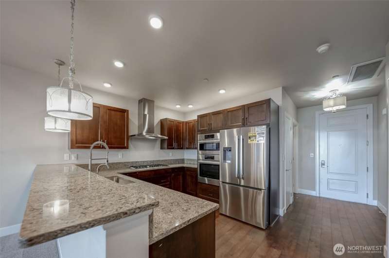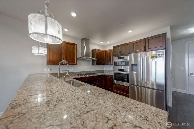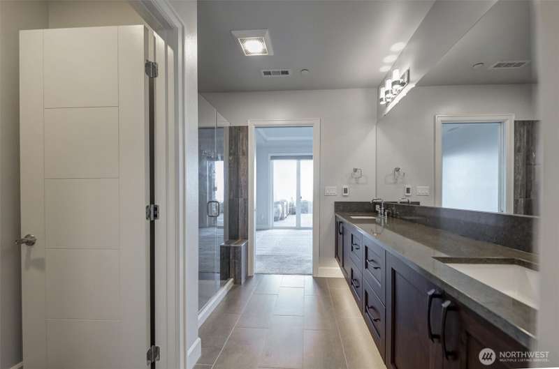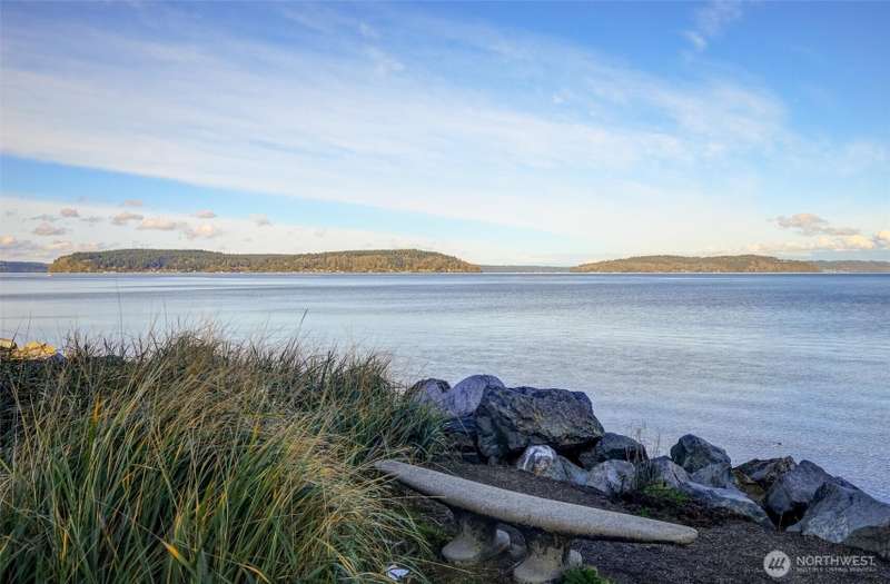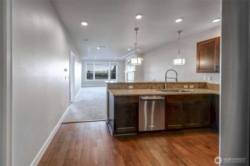 Indulge in sweeping Puget Sound views from your oversized patio, built for relaxed entertaining. This Point Ruston condo offers easy living in the Baker Building, featuring a spacious great room, crown molding, plush carpet, & a cozy fireplace. Large windows & a slider open to the patio & invite the outdoors in. The kitchen has quartz counters, bar height seating, Bosch SS appliances & new fridge. The primary suite includes a slider to the patio, sound views, heated floors, spa-style bath, tiled shower, dual sinks, & custom closet. A flexible guest room, full laundry room w/W/D, sink, & storage complete this home near waterfront trails, parks, shops, & dining. 2 side by side parking spaces. Enjoy living every day as if it were a vacation!