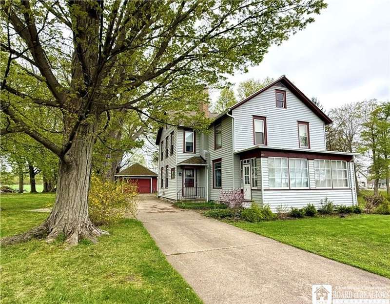 Welcome to this classic two-story farmhouse that blends country character with everyday convenience. Bright, open kitchen with a peninsula makes entertaining easy and flows into a large living area perfect for gatherings or quiet evenings. Thoughtful first-floor laundry adds practicality, while three comfortable bedrooms and 1.5 baths provide flexible living space.Outside, the 1.5-acre lot feels like a peaceful retreat even though you're in the village ? enjoy summer days in the above-ground pool or unwind on the relaxing deck beneath a beautiful wisteria canopy draped over the pergola. A standout feature is the oversized 4-car barn, complete with electrical service and an upstairs loft for storage, a workshop, or creative projects.This property offers rare combination of space, functionality, and outdoor enjoyment!