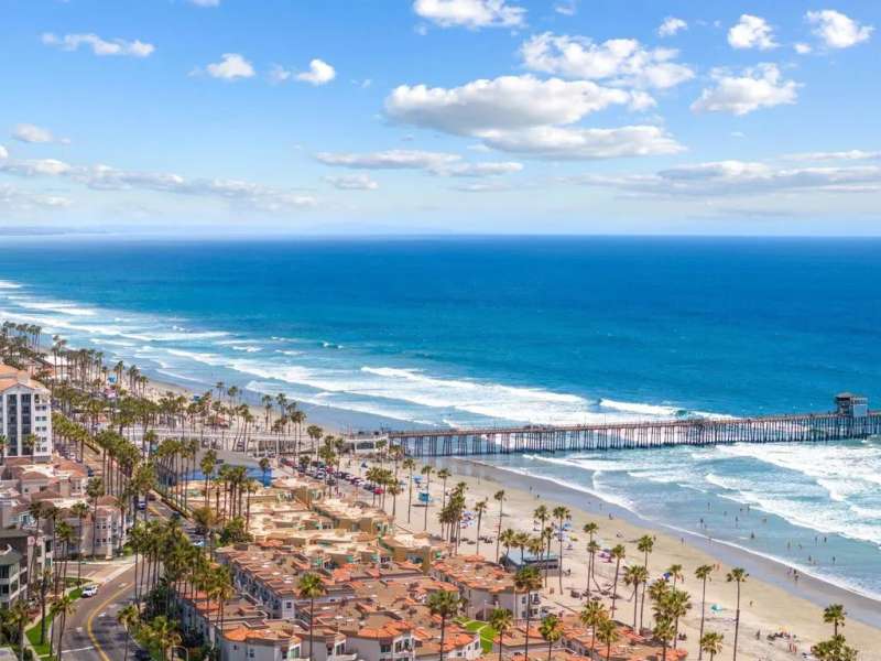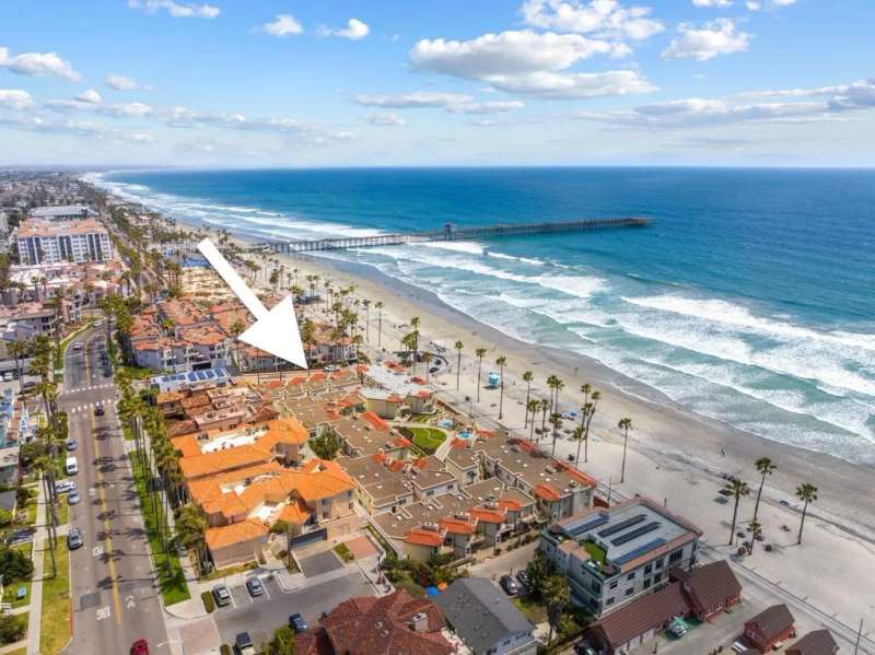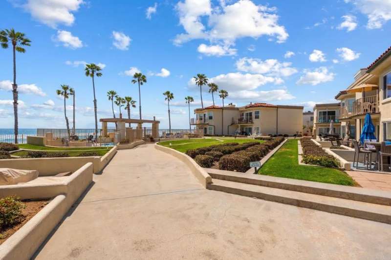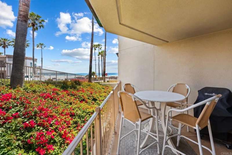 Step into the ultimate coastal lifestyle at this stunning beach condo in the highly coveted San Miguel complexjust a few steps from the sand and surf. Perfectly positioned along Oceansides iconic Strand, this beautifully updated residence offers stunning views of whitewater waves, surfers dancing across the tide, the historic pier, and nightly postcard-worthy sunsets. Yes, dolphins included. Imagine waking up to the sound of the ocean, sipping your morning coffee while watching the waves roll in, and ending your day with a glowing, beautifully lit Oceanside Pier as your backdrop. Whether you're grilling on your private ocean-view deck, dining al fresco, or simply soaking up the vibrant energy of the Strand, this home lets you experience the beach lifestyle 24/7. Offering true single-level living, this ground-floor residence allows you to skip the stairs entirelyideal for both everyday ease and entertaining. Inside, pride of ownership shines throughout. The home features new dual-pane windows, upgraded bathroom and kitchen plumbing, modernized ceiling electrical, and plantation shutters that add a touch of classic coastal elegance. The remodeled bathroom is a showstopper with dual sinks, quartz countertops, a new pocket door and barn door, and private in-unit laundry for added convenience. The patio sliders discreet roll-up shade offers both style and function. San Miguel is one of Oceansides most desirable oceanfront communitiesfully gated, pristinely maintained, and rich in amenities including underground parking, elevators, and two ocean view spas. The HOA has recently re