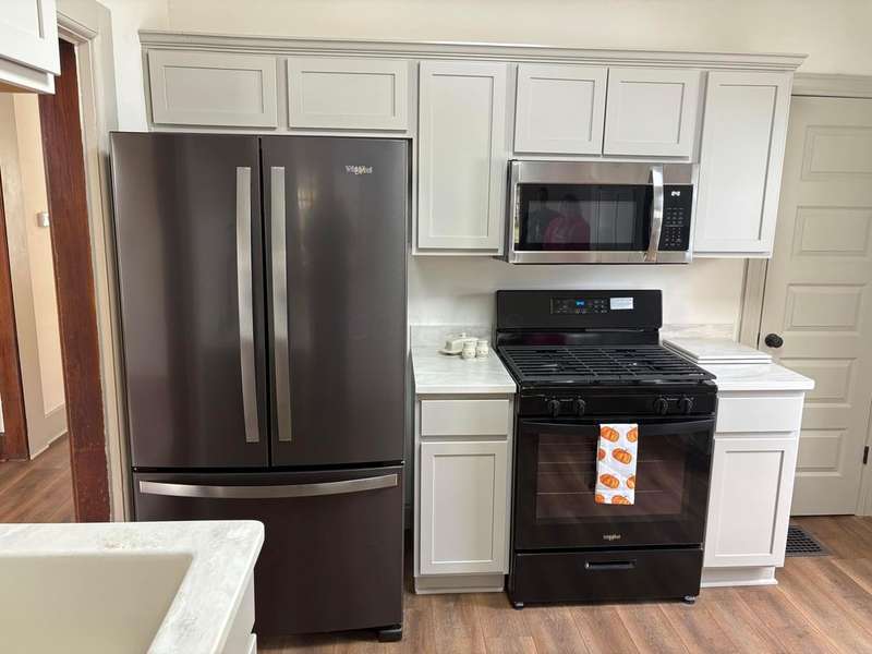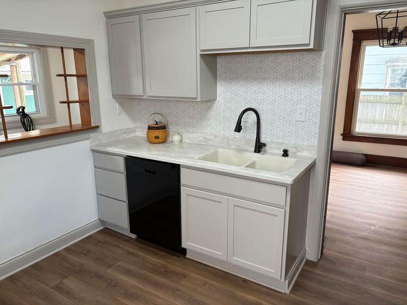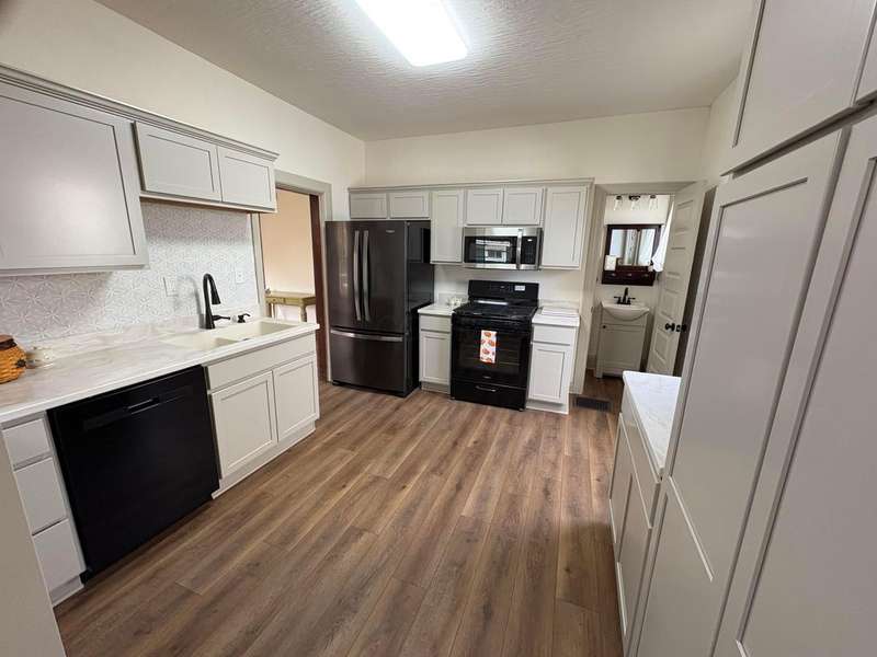 Come View!! This move in ready home!Complete remodel, new kitchen with New appliances, solid surface counter tops, new baths, first floor laundry, all new vinyl plank flooring and new carpet. Home features 3 bedrooms and 11/2 baths, spacious living area and beautiful dining area. Fenced yard and large 2 car garage with alley entrance.