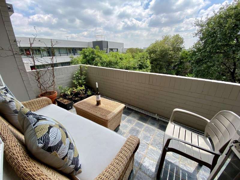 Refurbished, furnished one bedroom apartment available in central position in a sought after building in Illovo. This apartment is tastefully decorated with the basics and has parquet wood flooring throughout. The kitchen is well-appointed with good cupboard space. The large north facing balcony is sunny and overlooks the complex garden, beautiful trees and communal swimming pool. The main bedroom is also north facing and has ample cupboard. The bathroom is modern and spacious with large shower with a separate toilet. The complex has 24 hour security, pretty communal gardens and pool as well 1 secured parking. A stones through from many amenities and walking distance to nearby parks, shops, restaurants and the Wanderers gym. Ideally suited for a young professional and for expats alike.